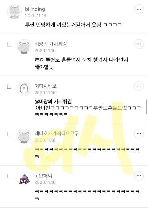 작성자파도처럼 이리 와봐요 나는 섬이에요 작성시간 20.11.27 너무욱겨ㅠ
