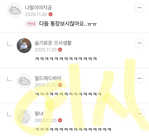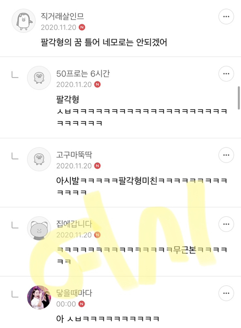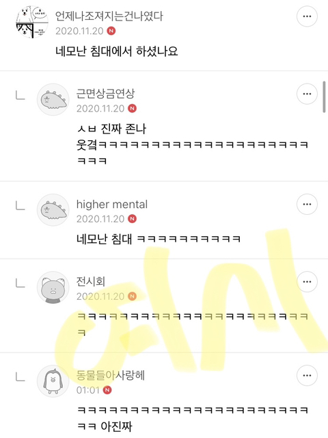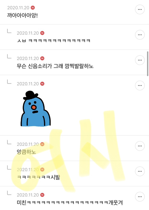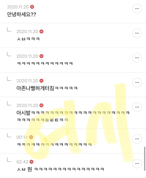 작성자퇴근하고싶어료 작성시간 21.12.06 안녕하세요?? 이지랄 아 씨발ㅋㅋㅋㅋㅋㅋㅋㅋㅋㅋ