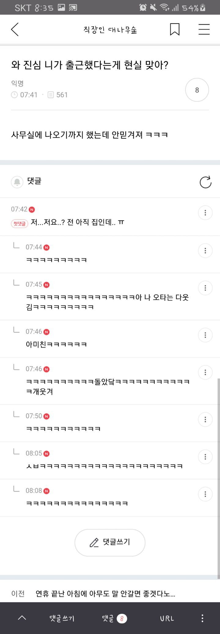 작성자집이 좋아서 작성시간 21.01.08 ㅋㅋㅋㅋㅋㅋㅋㅋㅋ 내글도 있어 ㅋㅋㅋㅋㅋㅋ 직대숲은 다 그렇다고요~~~~