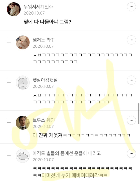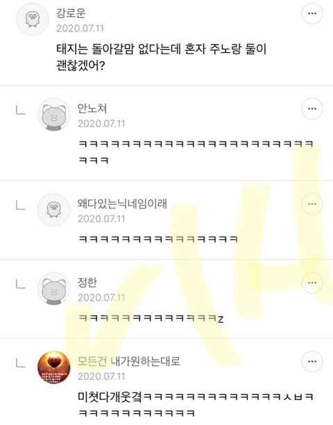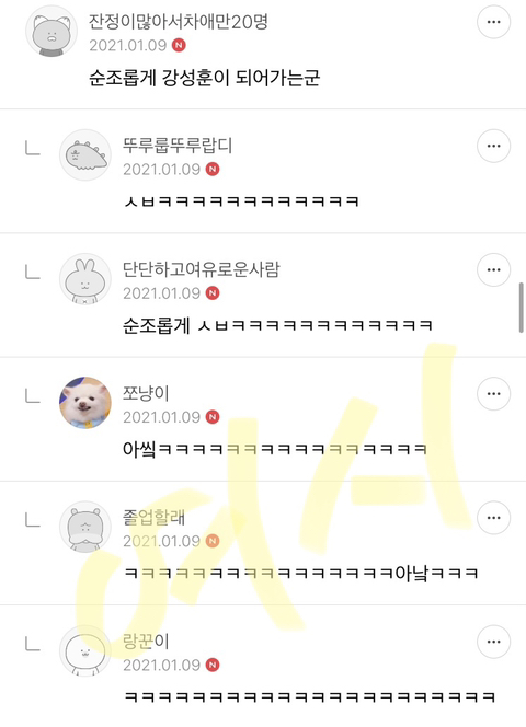 작성자만찐두ㅃ5 작성시간 22.01.04 다 너무 웃겨서 눈물나 ㅜㅜㅜㅋㅋㅋㅋㅋㅋㅋ