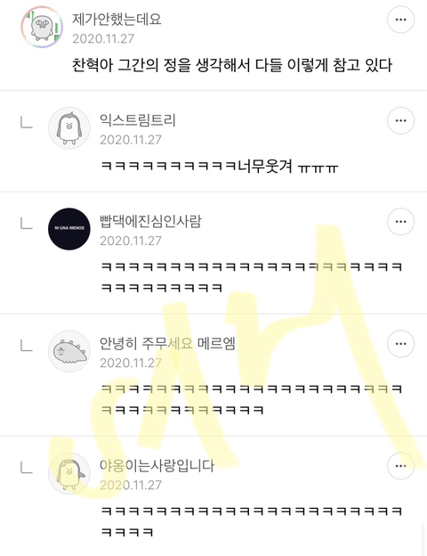 작성자휘낭시예 작성시간 21.01.14 아 옆에 다 나물이냬 미쳤나봐 ㅋㅋㅋㅋㅋㅋㅋㅋㅋㅋㅋㅋㅋㅋㅋㅋㅌㅌ