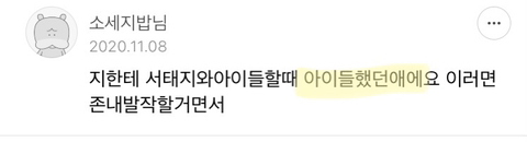 답댓글 작성자오빠가 그걸 왜 먹지...? 작성자 본인 여부 작성자 작성시간 21.12.20 가리키고 있는거 내가 먹으면 배부르고 맛있을꺼야~(내입에 넣어줘=먹고싶어~)