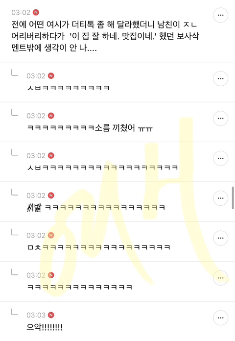 작성자자고일어나면모든게달라져 작성시간 21.04.22 아 미쳤닼ㅋㅋㅋㅋ진짴ㅋㅋㅋㅋㅋㅋ