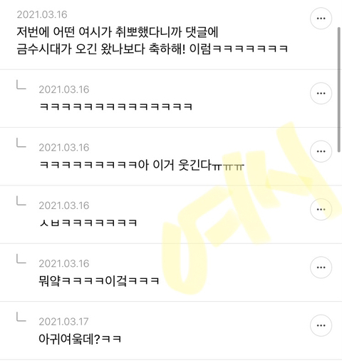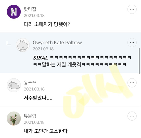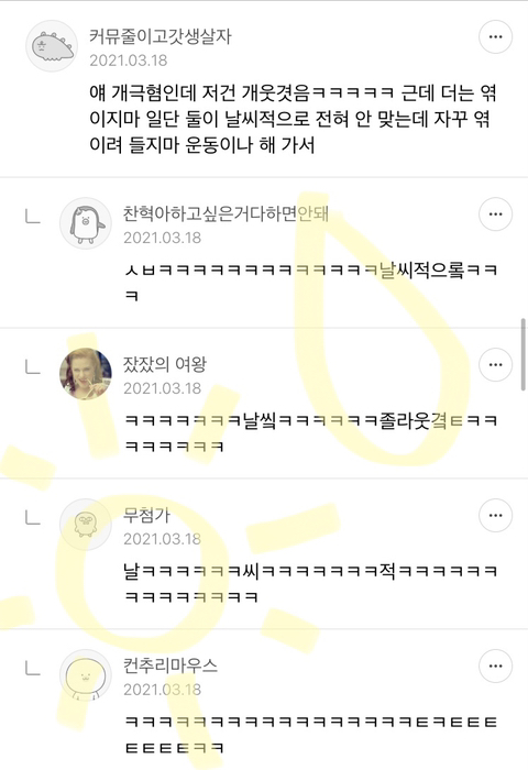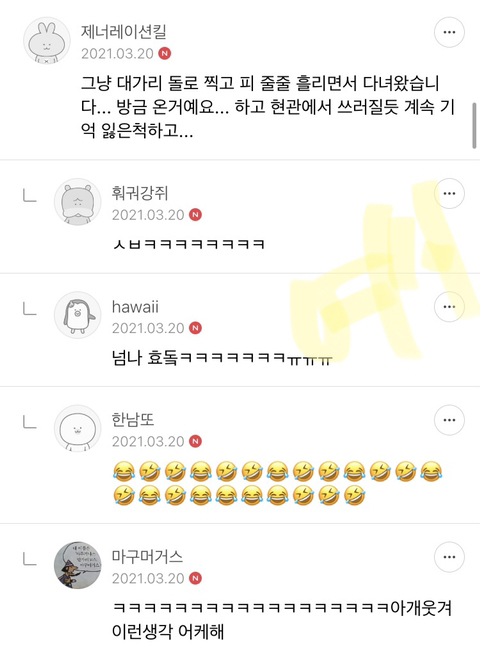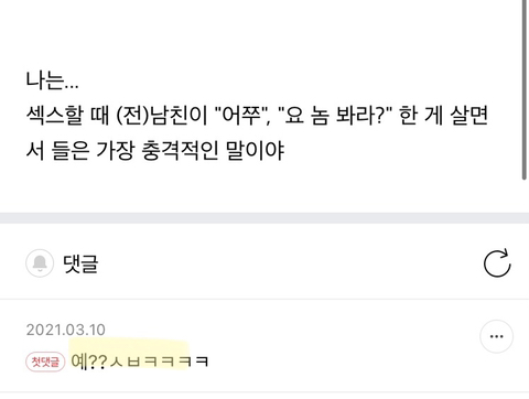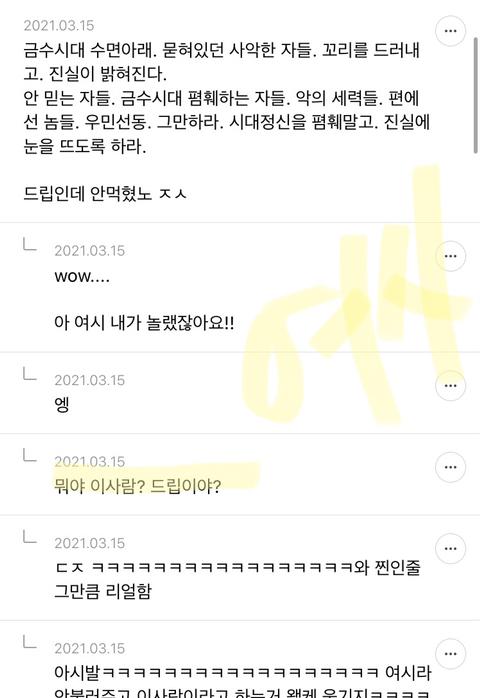작성자고구마스틱냠냠 작성시간 21.03.28 ㅋㅌㅋㅋㅋ아 마지막 글쓴이 뻘하게터지노