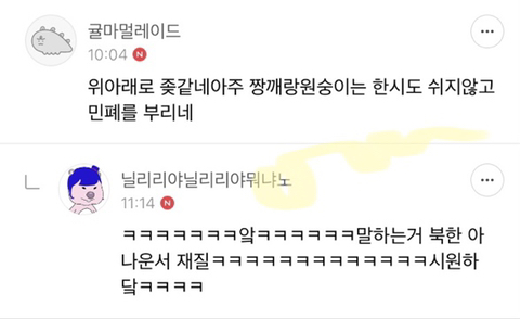작성자극대노강쥐 작성시간 21.04.12 ㅅㅂㅋㅌㅌㅋㅋ 아 왤케 웃겨 ㅅㅂㅋㅌㅌㅋㅋ 동서쪽 ㅋㅌㅌㅋㅋㅋㅋ 개빡