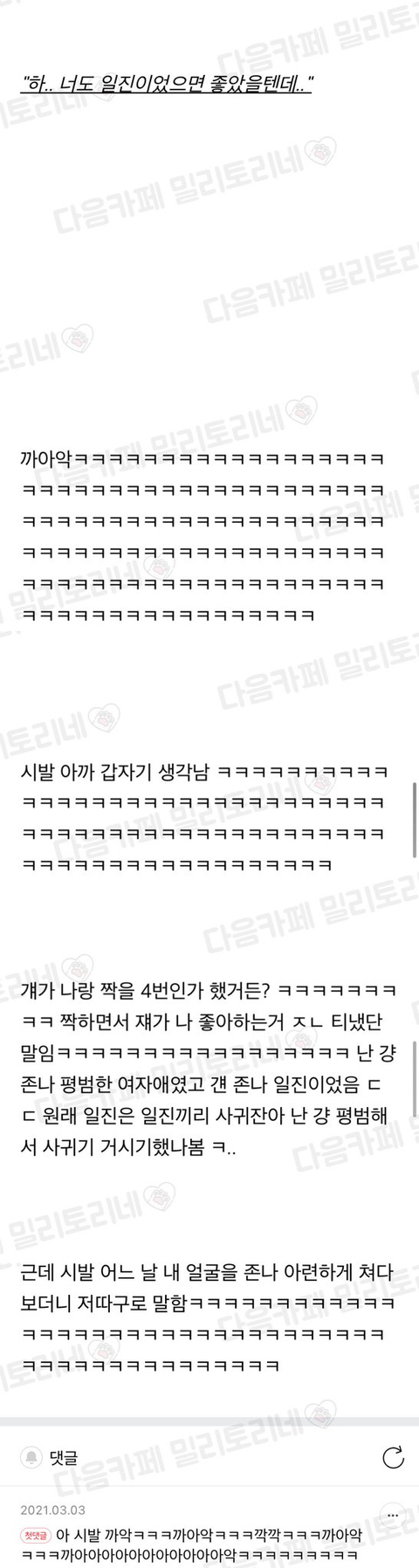[여시캡쳐]월요일인데 캡쳐 함 봐주세요 작성자하이파이브 하지망!|작성시간21.04.05|조회수48,584 목록 댓글 90 글자크기 작게가 글자크기 크게가 출처 : 여성시대 하이파이브 하지망!불펌하면 고소 할꺼임!!참치 성격 기안 같다고 어떤 여시가 댓씀ㅋㅋㅋㅋ끝!문제시 수정삭제 원하는 여시 비댓!확인하고 바로 삭제 해드림좋아하는 짤들로 마무리(짤들은 첫댓에 올려둠! 다음검색 현재 게시글 추가 기능 열기 북마크 공유하기 신고 센터로 신고 댓글 댓글 90 댓글쓰기 답글쓰기 댓글 리스트 작성자8272626 | 작성시간 21.04.08 에궄ㅋㅋㅋㅋㅋㅋㅋㅋ 작성자속옷환자 | 작성시간 21.04.08 와 강돈원 작성자메갈리아 | 작성시간 21.04.08 학다리 왕잨ㅋㅋㅋ 작성자워라밸을위하여 | 작성시간 21.04.08 개웃기다 ㅋㅋㅋㅋ 작성자저기요빌런 | 작성시간 21.08.16 ㅋㅋㅋㅋㅋㅋㅋㅋㅋㅋ 댓글 전체보기