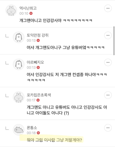 작성자김씨집안도 이해하기 어려운 부분 작성시간 21.04.23 다들 드립 미쳤다고 개웃겨ㅠㅠㅠㅠㅋㅋㅋㅋㅋㅋㅋㅋㅋㅋㅋㅋㅋㅋㅋㅋㅋㅋㅋㅋㅋㅋㅋㅋㅋㅋ
