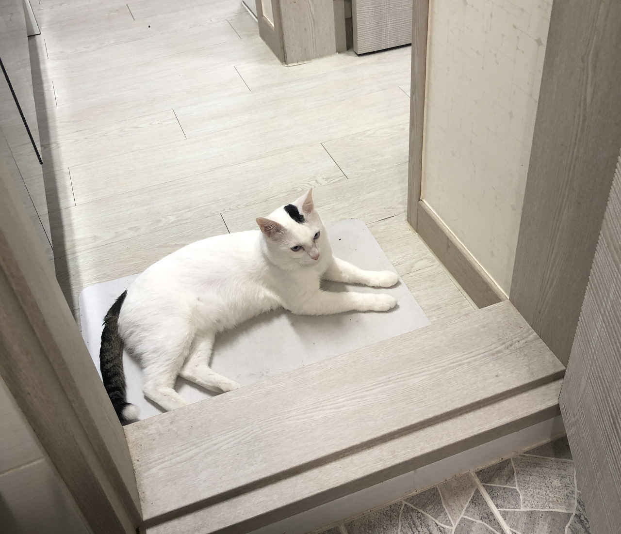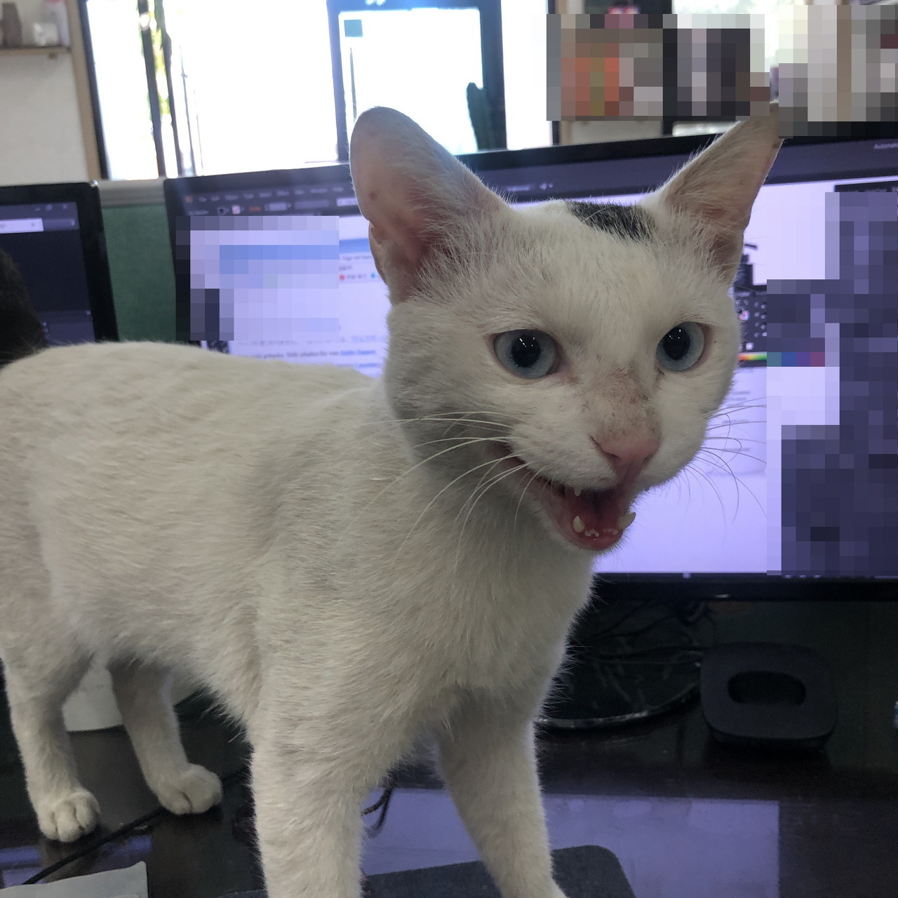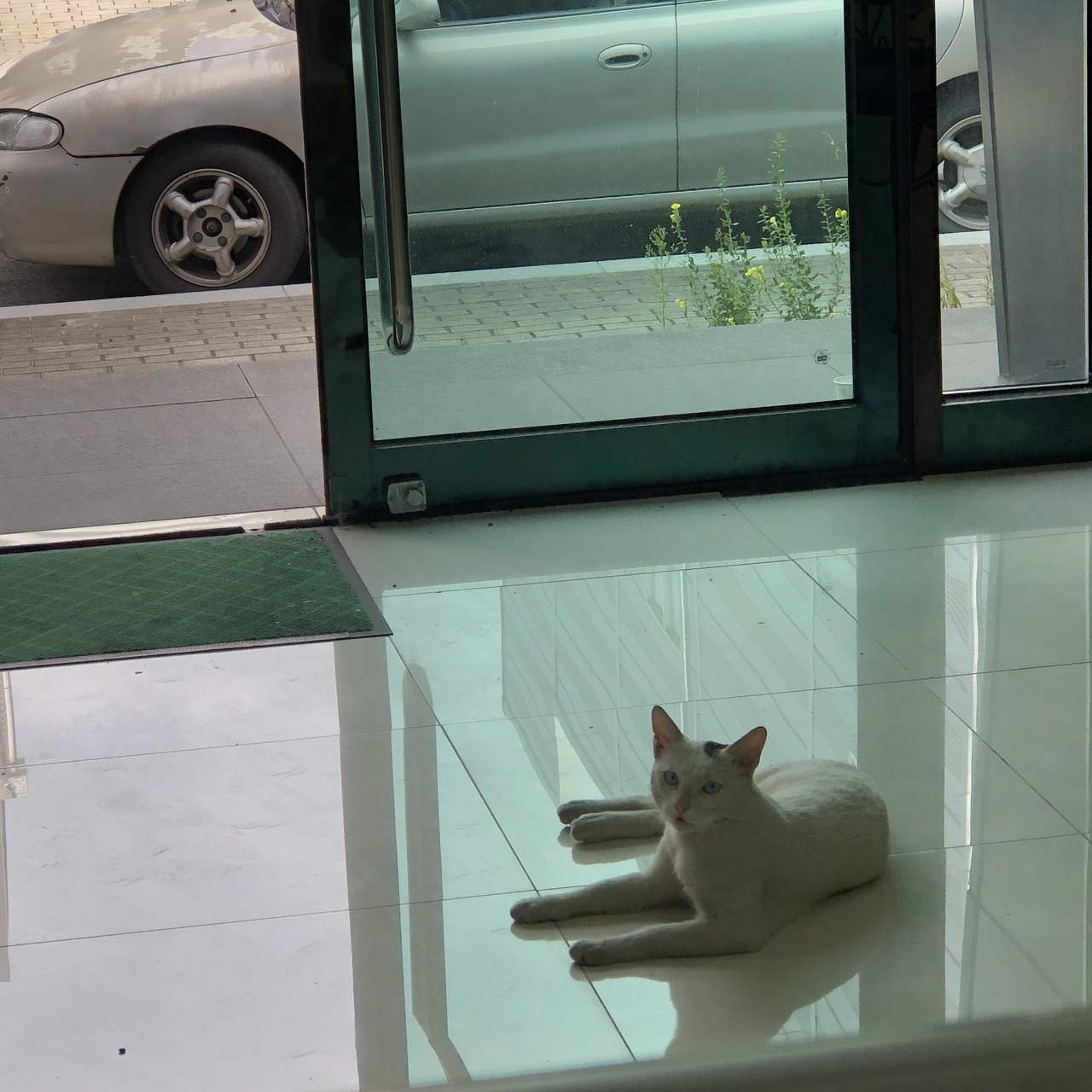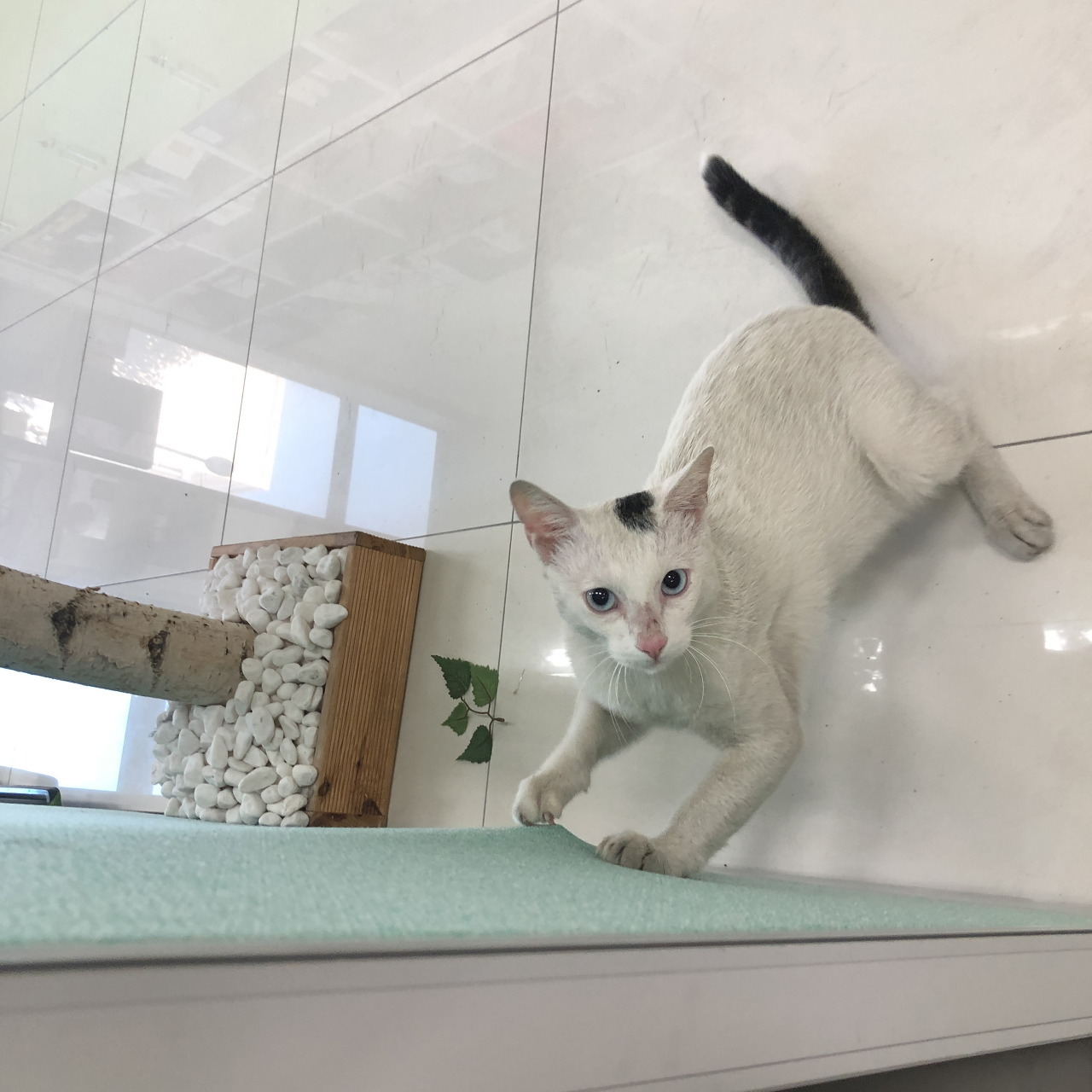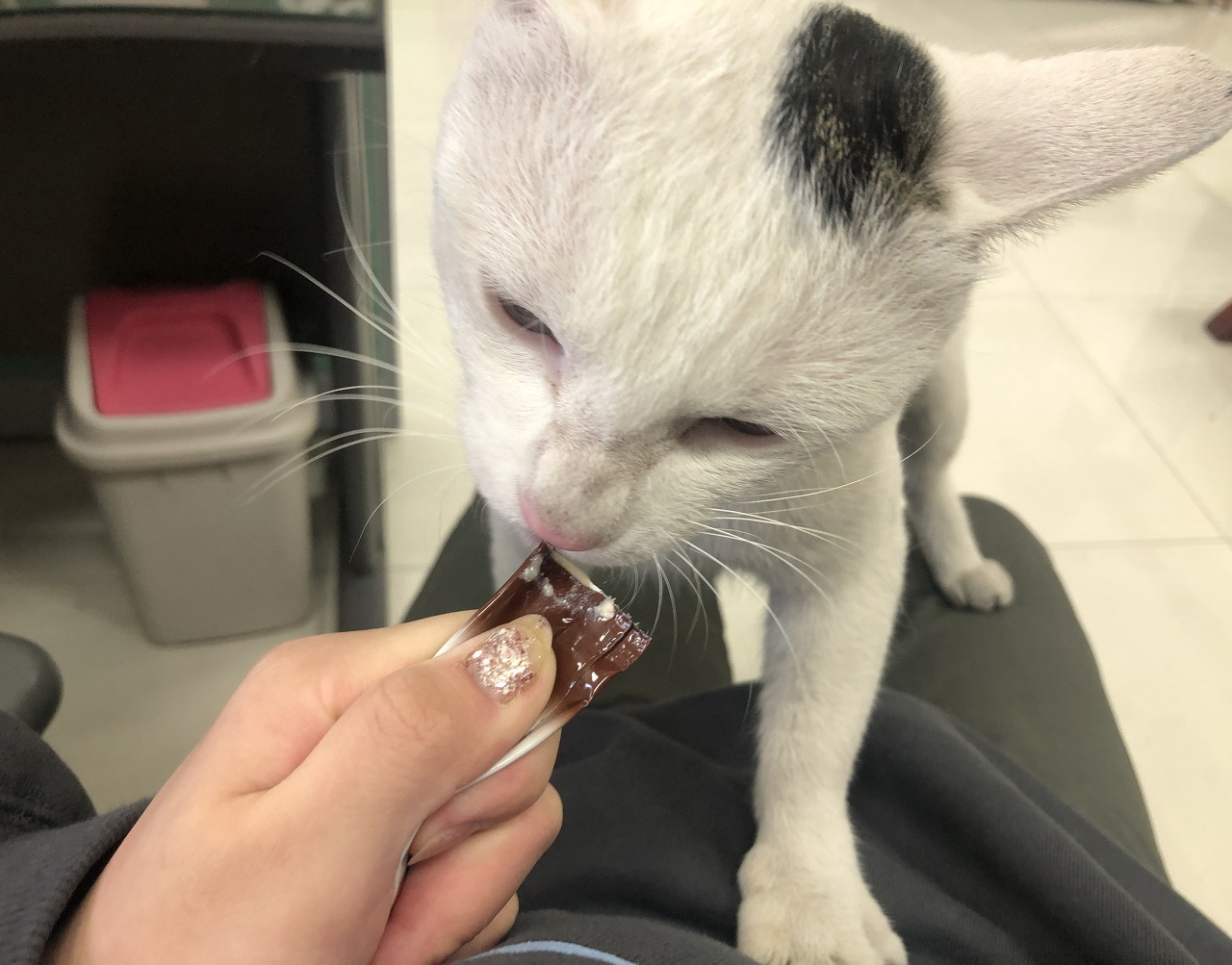 흰몸통에 꼬리랑 머리 점 부분만 고등언데 눈은 파래가지고 이때까지 본 길냥이랑 좀 다르게 생겨서 진짜 귀엽더라 ㅜ