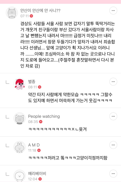 서울 사람덜이 모두 나를 좋아하는줄 알았던 갱상도버스.....