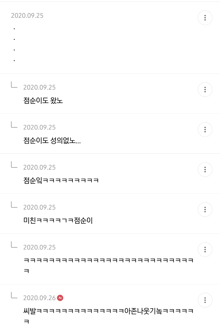 (*점순이:주로 연옌까달글 등등 맘에안드는 달글 못달리게 하려고 공백으로 도배하는사람)