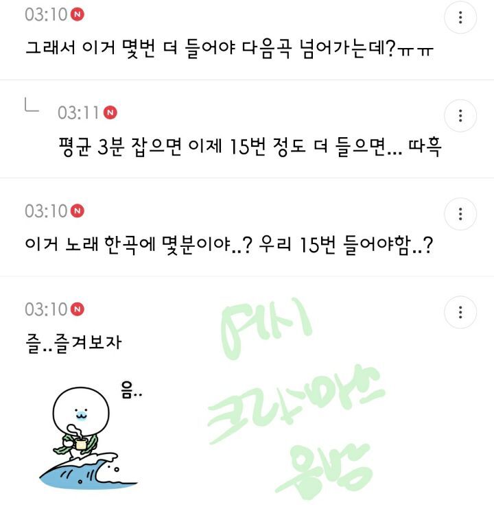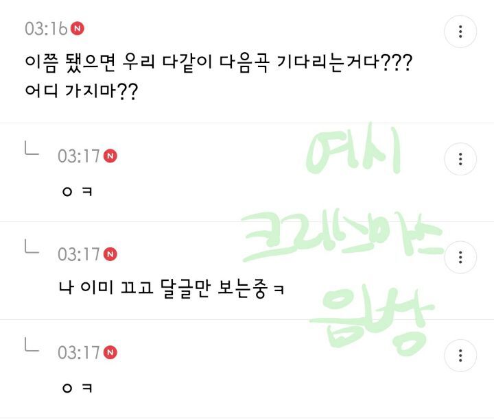 그 후 여시들은 기쁜 마음에 꿍디를 흔들며 행복하게 뒷풀이 음방을 마무리했답니다. -끗-