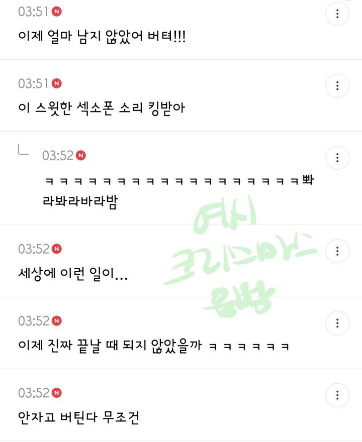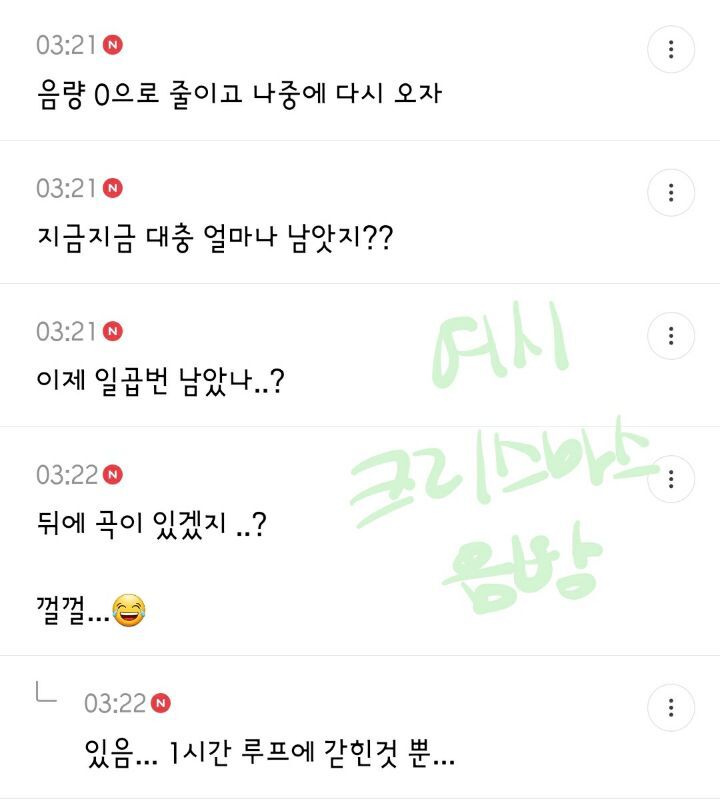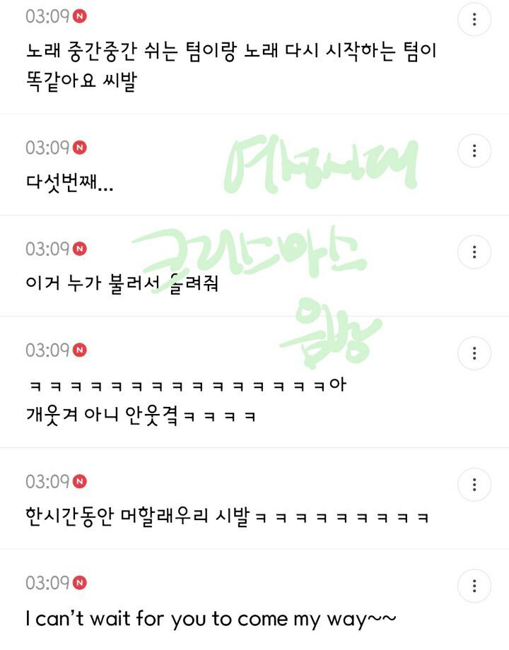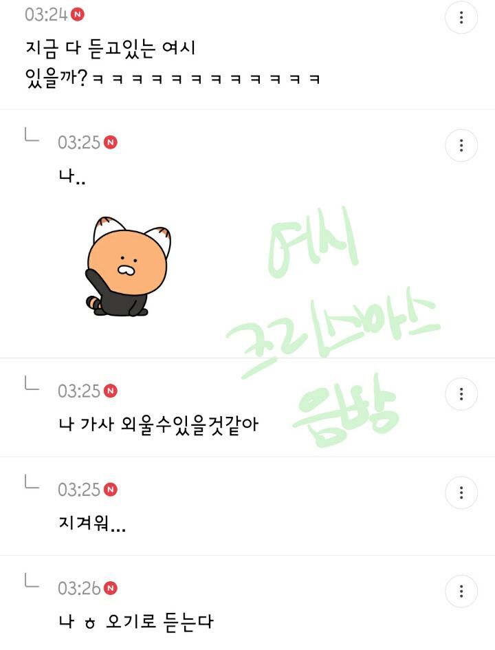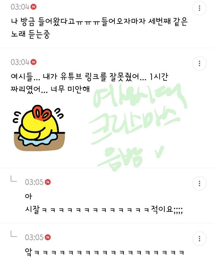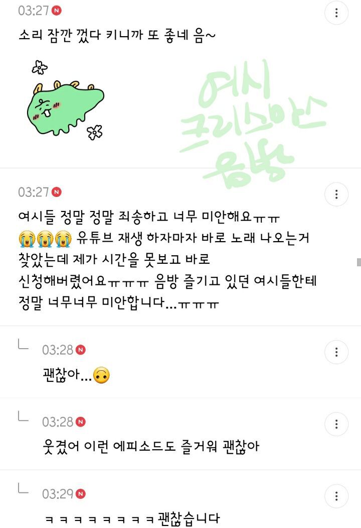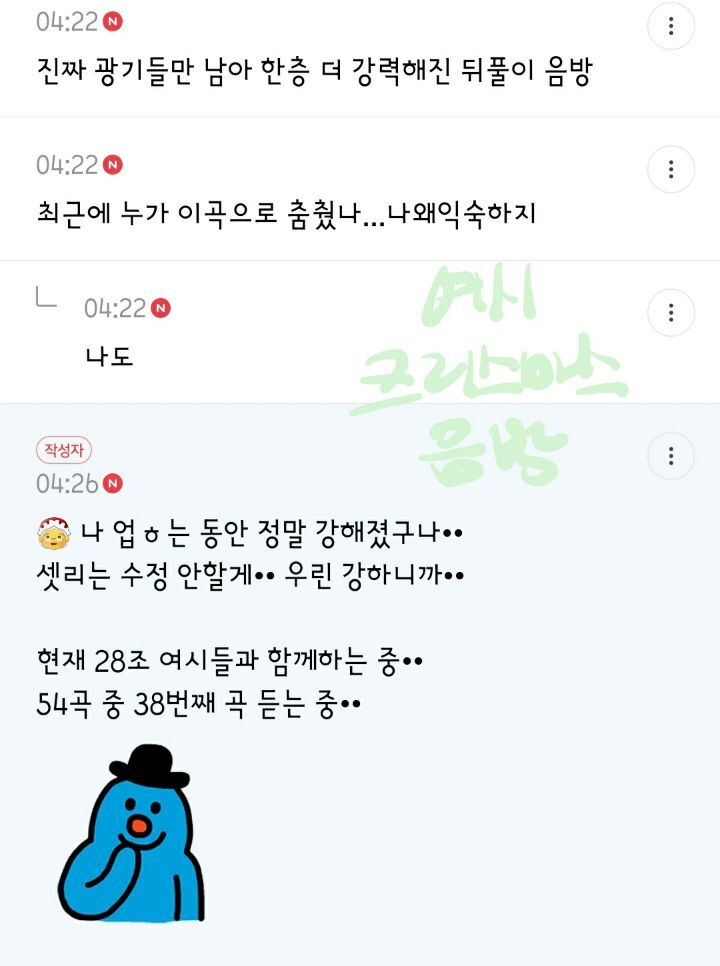 수십명의 여시들이 남아 신청곡을 함께 들으며 합동음방 뒷풀이를 즐기고 있었는데••