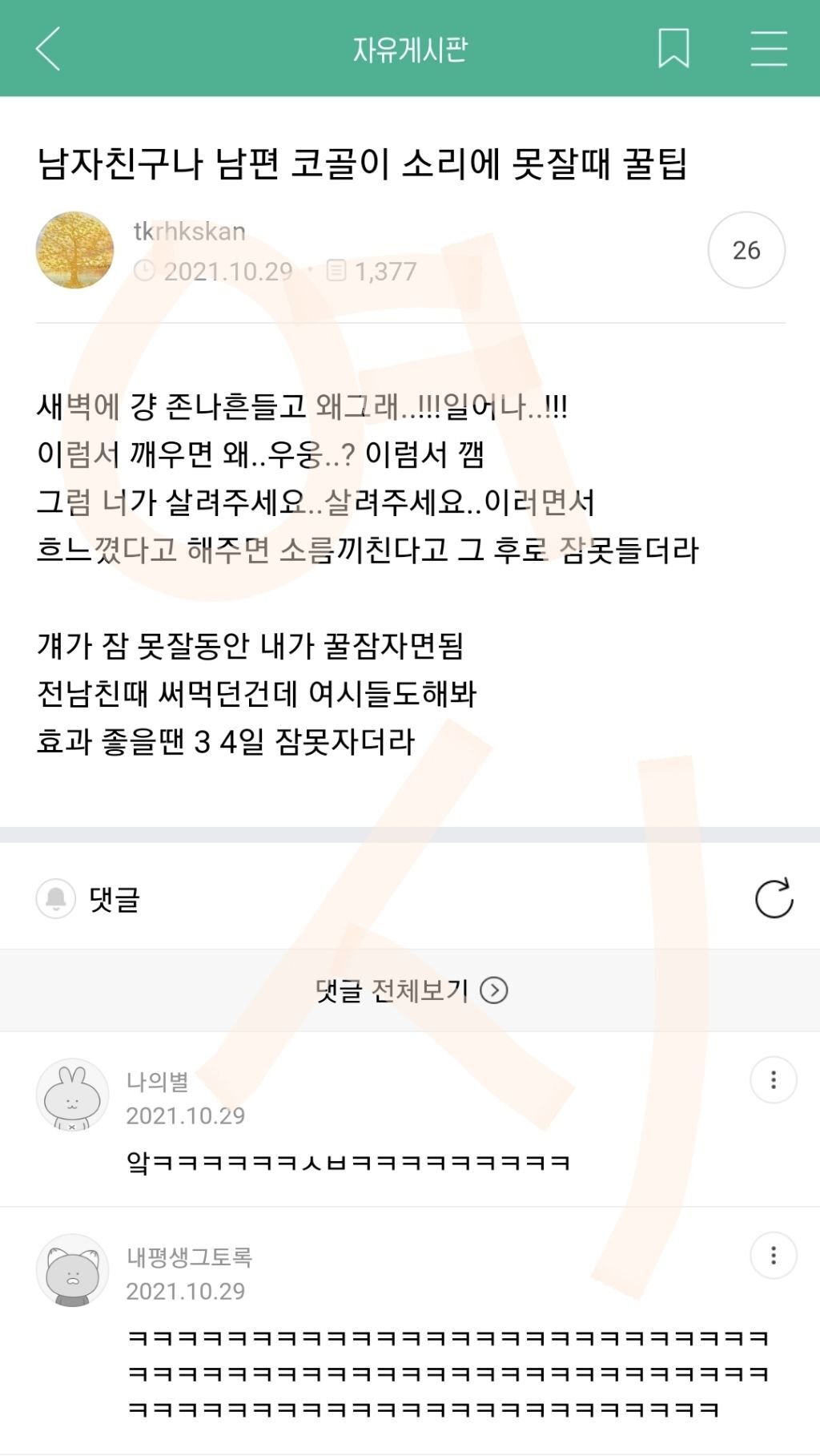 작성자언니제발날가져요 작성시간 22.02.11 아 코골이 개꿀팁이네 ㅋㅋㅋㅋㅋㅋㅋ