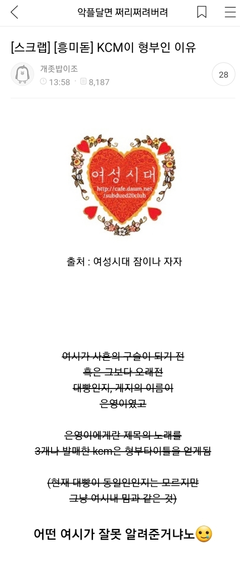 ㅋㅋㅋㅋㅋㅋㅋㅋㅋ미쳨ㅋㅋ(근데 언제부터 kcm이 대빵 남친이야?ㅜㅜ)