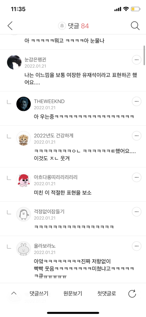 작성자귀여운건못참아 작성시간 22.04.28 ㅋㅋㅋㅋㅋㅋㅋ 아 미친 혼자 히죽거리니까 엄마가 뭐 재미있는거 보냐고 같이보재 ㅋㅋㅋㅋㅋㅋ