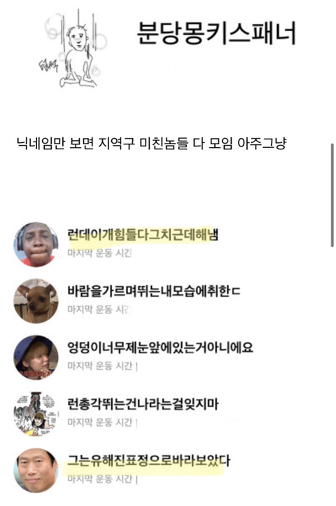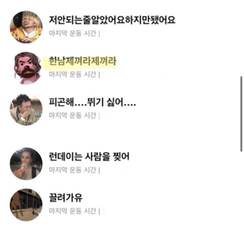 시발.. 너무웃김 내최애는 런데이힘들다그치근데해냄임 프사가 넘 절묘해 ㅜ