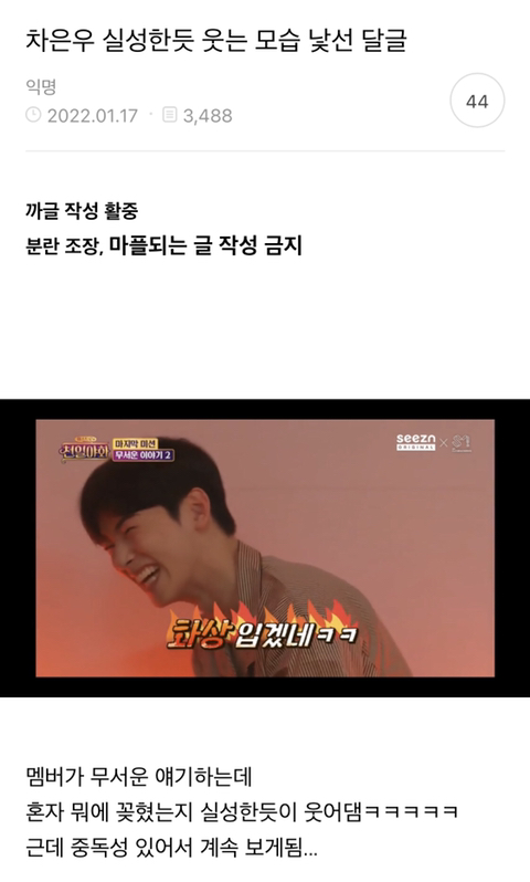 ㅋㅋㅋㅋㅋㅋㅋㅋ달글 제목이 너무 웃김ㅋㅋㅋㅋㅋㅋㅋㅋㅋㅋㅋㅋㅋㅋㅋㅋ차은우 실성