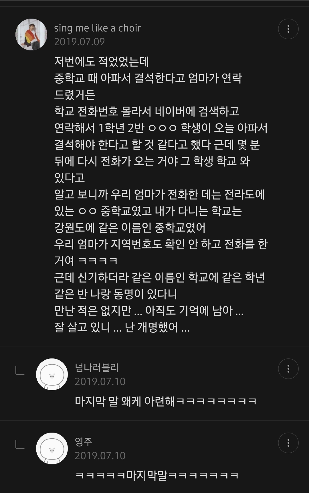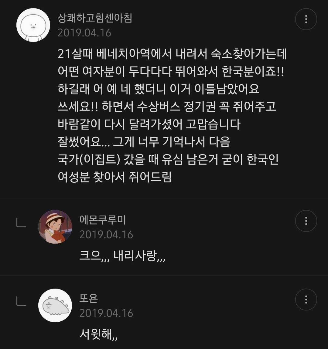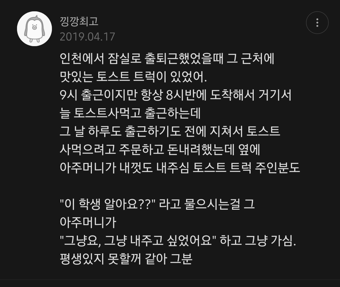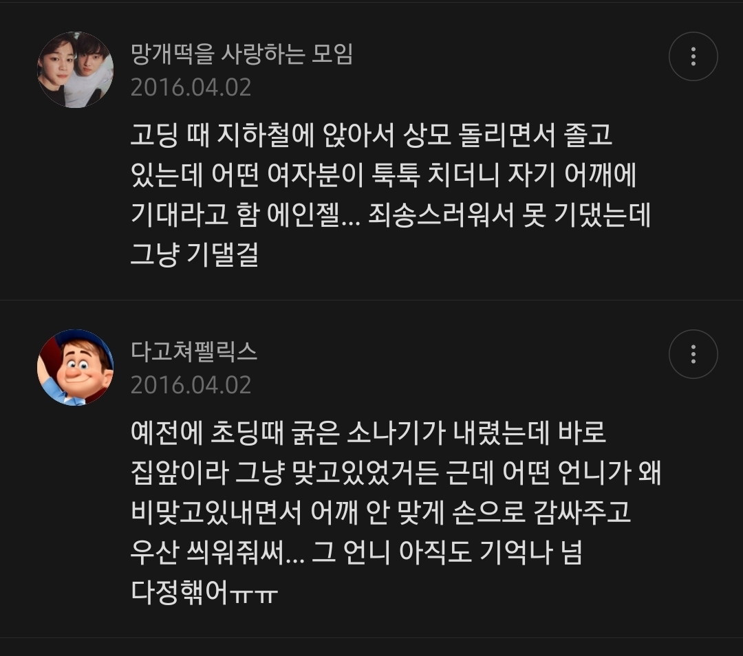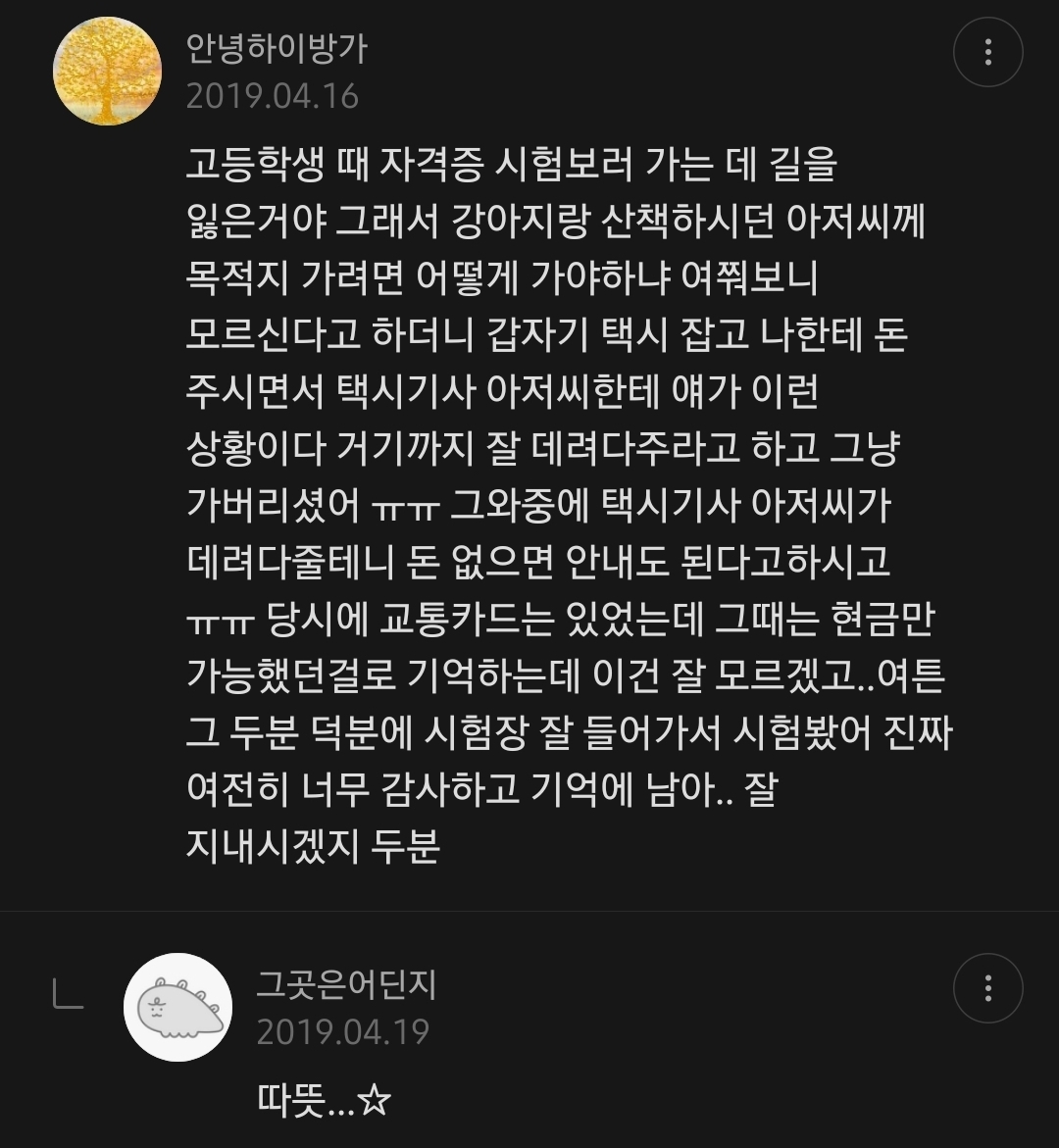 너무 아파서 길바닥에 그냥 널부러져 누워 있던 날 보고 놀라서 몰고 가던 차도 세우고 와 준 아저씨