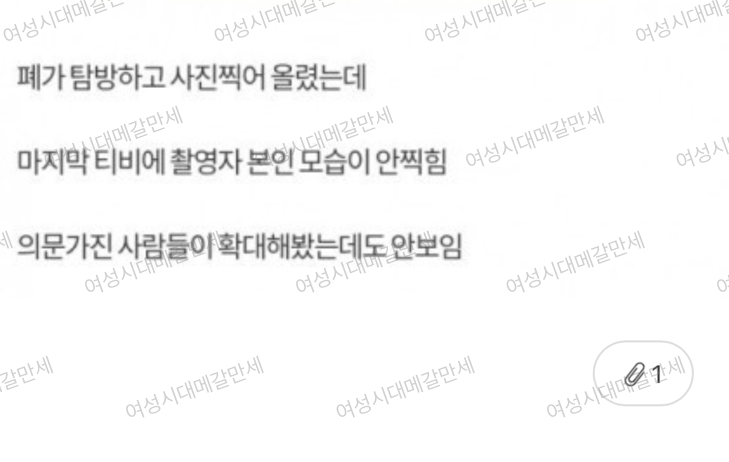 마지막에 티비 앞에서 찍은 사진이 있는데 티비속에 사람이 안 보여서 뭐 무섭다는 글이었삼