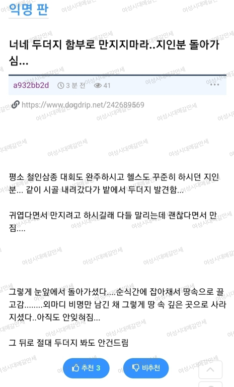 (☠️특히 한남 커뮤 불펌하면 부랄 썩어 뒤지는 병 걸리라고 저주 걸어둠☠️)