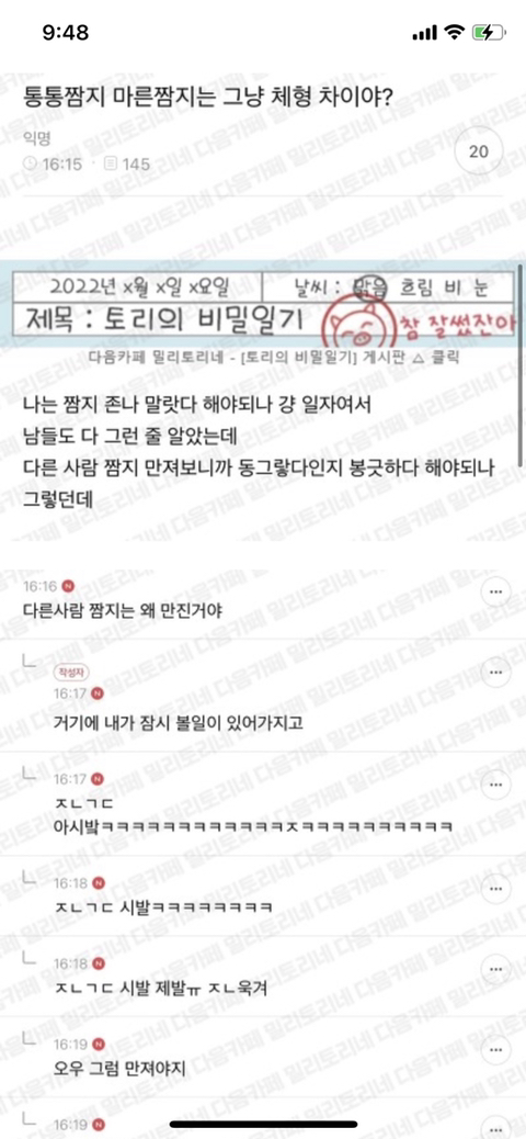 [여시캡쳐]통통짬지 마른짬지는 그냥 체형 차이인지 궁금한 밀토의 글을 본 여시들 캡쳐 작성자요리에센스연두|작성시간22.03.30|조회수64,121 목록 댓글 350 글자크기 작게가 글자크기 크게가 출처 : 여성시대 요리에센스연두허락 안받은 캡쳐입니다 내리시길 원하시는 여시들은 댓글 주세여!!밀토 캡쳐가 쩌리에 배꼽의 행방으로 올라옴 🤣 이제 여새들 댓글 캡쳐 푄티 속에 먹을거 갖구 다니는 여시들나도 하나만 주라 커피콩빵 ㅎ ㅋㅋㅋㅋㅋㅋㅋㅌㅋㅋㅋㅋㅋㅋ헛웃음남 수정(삭제!) 🤌ㅋㅋㅋㅋㅋㅋㅋ추가) 파하핰ㅋㅋㅋㅋㅋㅋㅋㅋㅋㅋㅋㅋㅋㅋㅋㅋㅋㅋㅋㅋ ㅋㅋㅋㅋㅋ왜케웃갸 끝문제시 바지안에 커피콩빵 숨김 다음검색 현재 게시글 추가 기능 열기 북마크 공유하기 신고 센터로 신고 댓글 댓글 350 댓글쓰기 답글쓰기 댓글 리스트 작성자금연 | 작성시간 22.04.11 난 내친구가 만져보더니 존나 딱딱하다고 놀래더라 다 다른둣ㅋㅋㅋㅋㅋ 작성자단소마스터 | 작성시간 22.04.12 ㄹㅇ 동생이 나보고 불알 달린거같대ㅜ 작성자뿌링클쿵야 | 작성시간 22.04.24 ㅋㅋㅋㅋㅋㅅㅂ 작성자지옥에서 온 비혼러 | 작성시간 22.04.26 미친ㅋㅋㅋㅋㅋ 아웃곀ㅋㅋㅋㅋ 작성자관심분야TMT | 작성시간 22.05.04 어 진짴ㅋㅋㅋㅋㅋ미쳤나봐ㅜㅋㅋㅋㅋㅋㅋ 댓글 전체보기