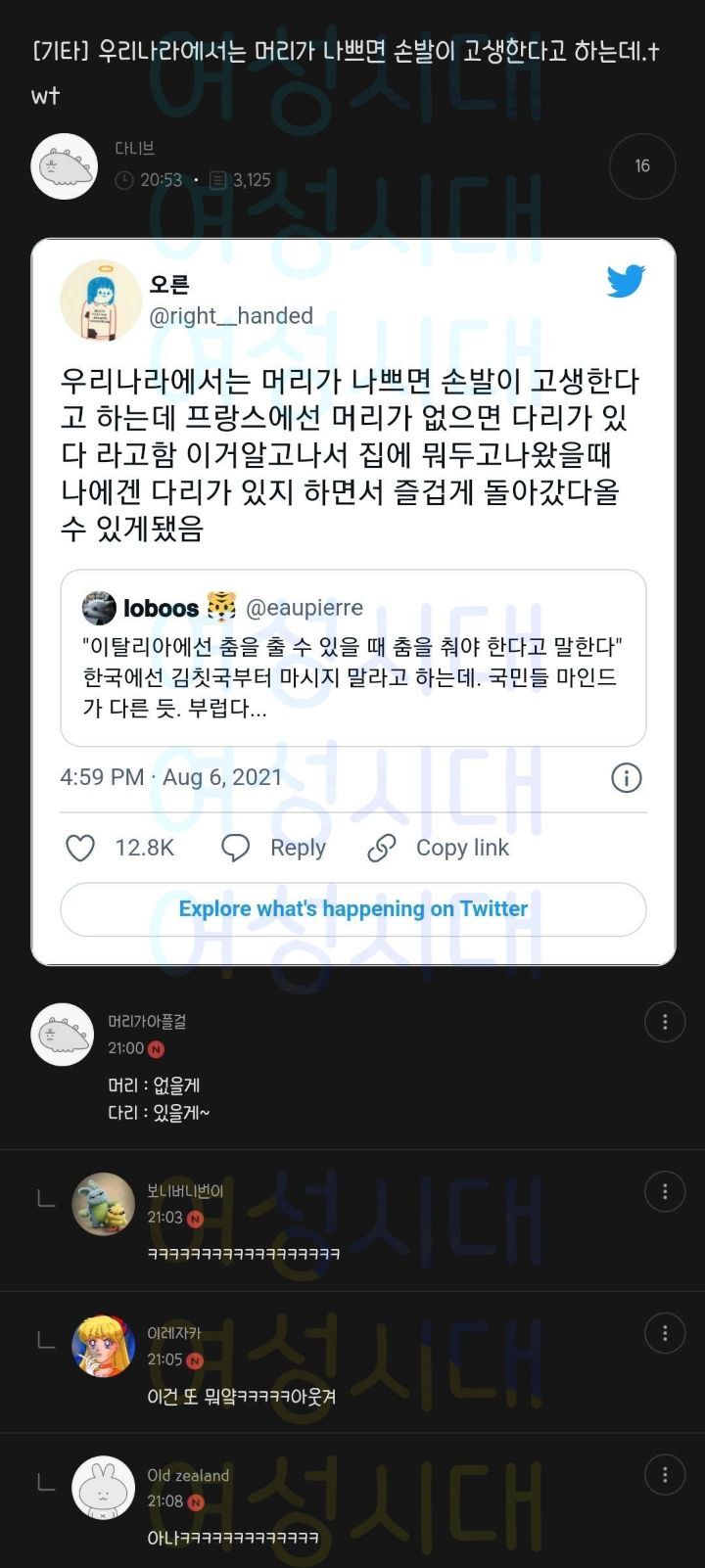 [여시캡쳐]내기준 낄낄포인트 캡쳐 작성자아주 그냥 호되게 맞아야돼|작성시간22.04.12|조회수38,684 목록 댓글 65 글자크기 작게가 글자크기 크게가 출처 : 여성시대 아주 그냥 호되게 맞아야돼ㅁㅂ ㅁㅂ ㅁㅂ쩌리 정처없이 돌아다니며 주운내 기준 낄낄포인트들 여시들이랑 같이 보고싶어서 가져왔다~!~!~!끝!!혹시나 글 내리기 원하는 여시 알려주면 최대한 빨리 내릴게문제 있는경우 알려주면 최대한 빨리 수정하겠음 !아무도 궁금하지 않을수도 있지만지난번 글에 묻는 여시들이 몇명 있었어서!내 폰트는 이거진짜 끝 다음검색 현재 게시글 추가 기능 열기 북마크 공유하기 신고 센터로 신고 댓글 댓글 65 댓글쓰기 답글쓰기 댓글 리스트 작성자The Band CAMINO | 작성시간 22.04.15 개웃김 작성자매일 눈뜰 때마다 설레이는 아침을 | 작성시간 22.04.16 ㅋㅋㅋㅋㅋㅋㅋㅋㅋㅋㅋㅋㅋㅋㅋㅋㅋㅋㅋㅋㅋ 작성자Emma Brown | 작성시간 22.04.20 세번 보면 죽는 그림 미친 ㅋㅋㅋㅋㅋㅋㅋㅋㅋㅋㅋㅋㅋㅋ 작성자닉네움수죵 | 작성시간 22.05.16 ㅋㅋㅋㅋㅋㅋㅋㅋㅋㅋㅋㅋㅋㅋㅋㅋㅋㅋ 작성자뿌링클쿵야 | 작성시간 22.06.25 ㅋㅋㅋㅋㅋㅋㅋㅋ 댓글 전체보기