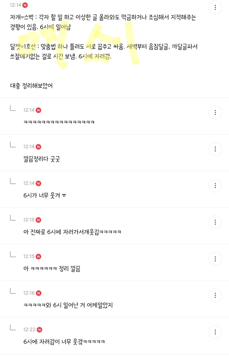 특히 6시에 자러 감이 개찐 ㅋㅋㅋㅋㅋㅋ