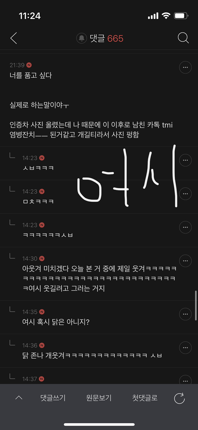 그리고 그 글은 여시들의 드립력을 자극시켰고..