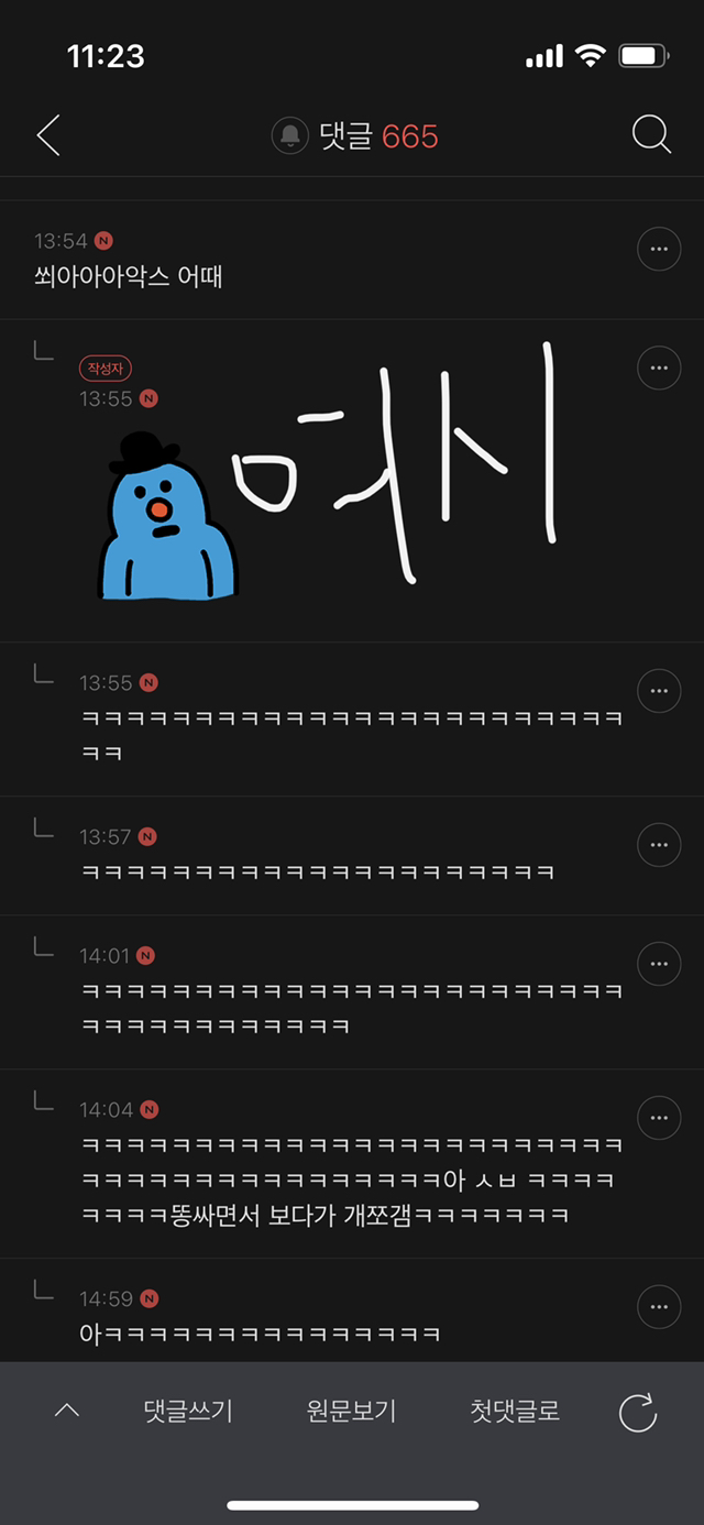 보고 졸라웃겼어서.. 함께 웃고 싶어서 와봤어 ㅎ