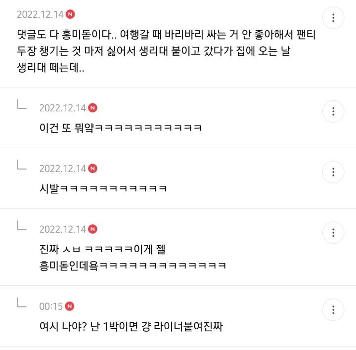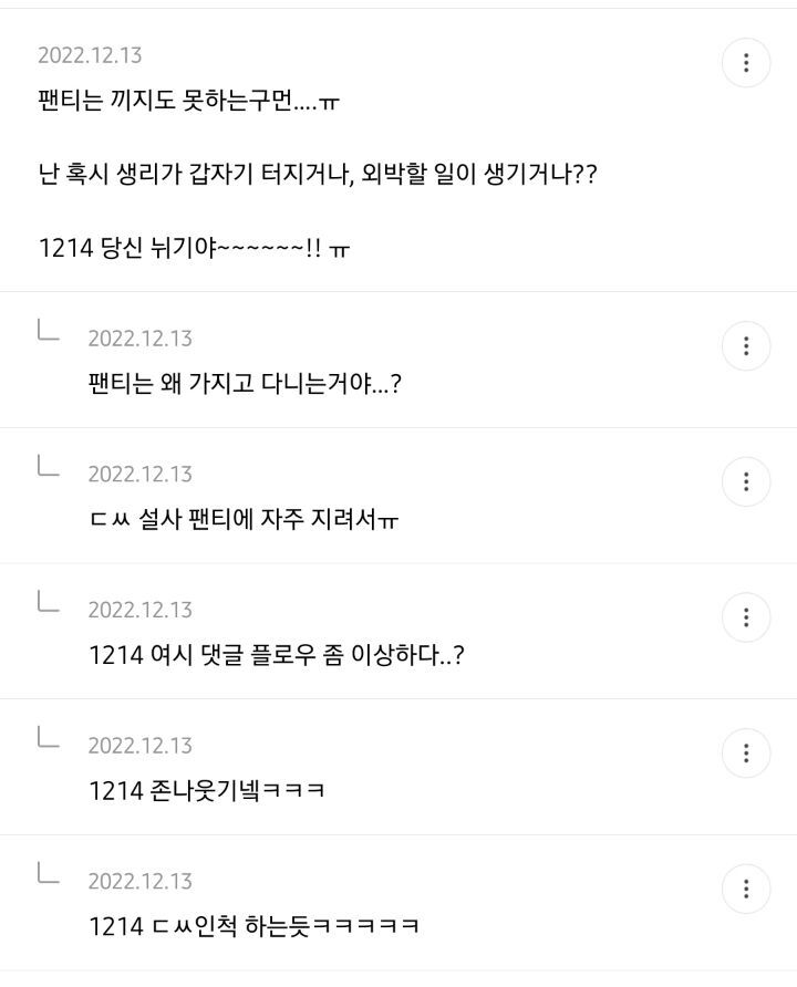아까 그 설사때문에(아님) 팬티두개들고다니는 여시랑 정반대인 ㅠㅠㅠ