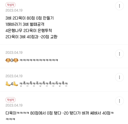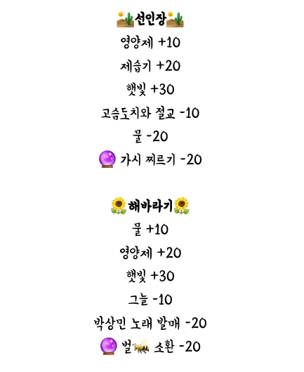 이렇게 식물마다 번호판이 있는데 돌아가면서 1나명씩 번호를 부르면 해자가 불러주는 점수를 더하거나 빼면 됨.