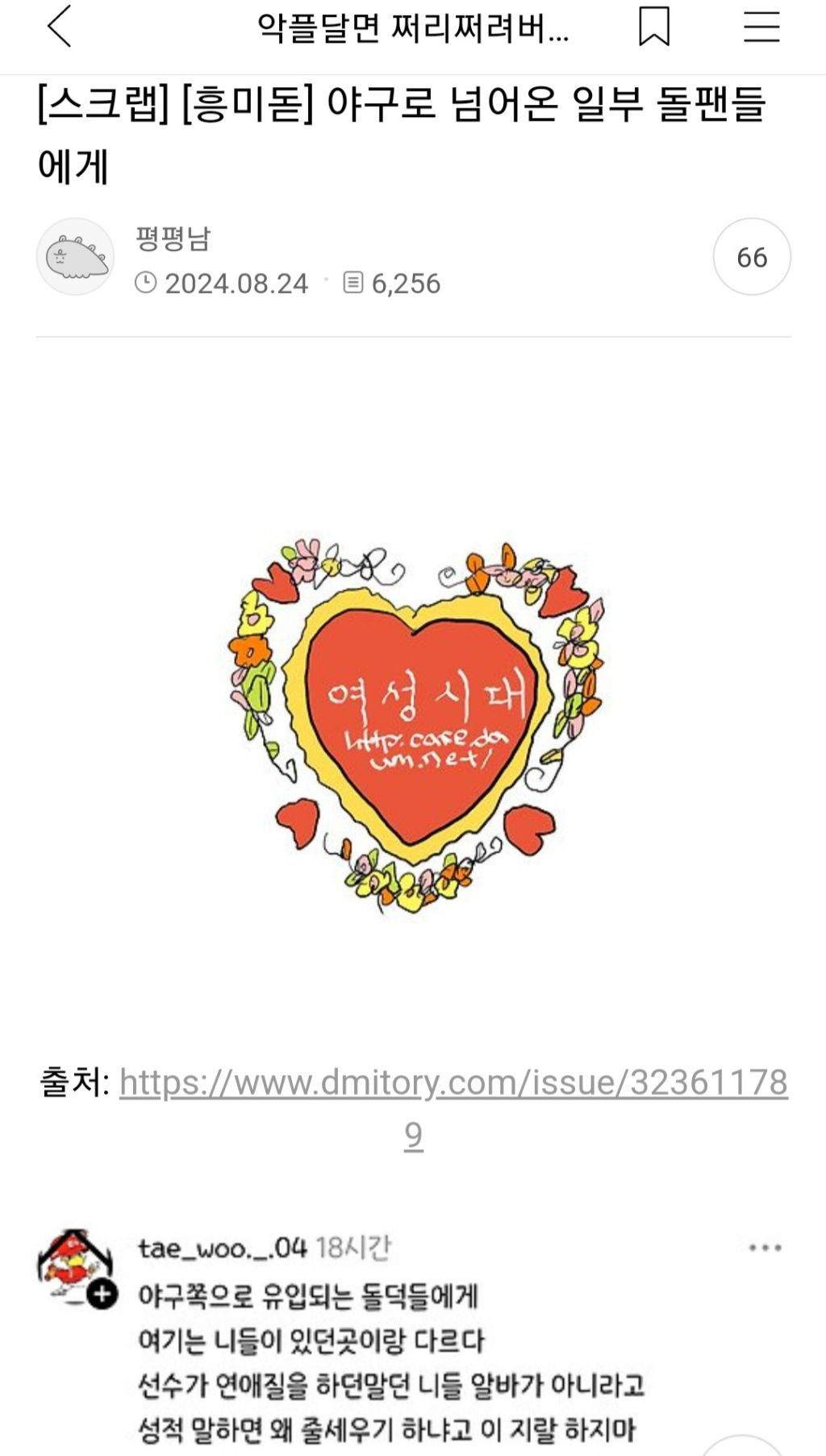 혹시나 누가 댓쓴 여시한테 태클걸까봐 닉 가림