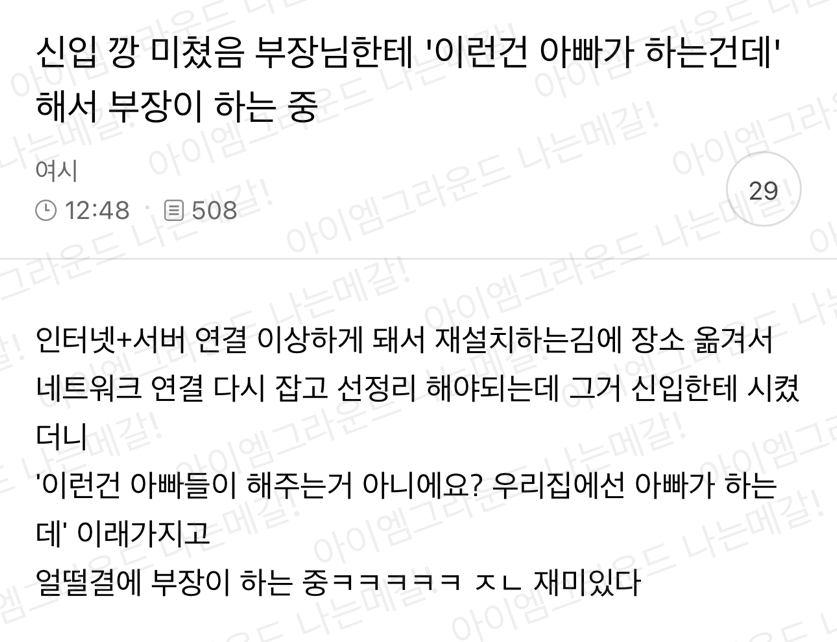 우리 아빠는 하는데 부장님은 못하시는거에요?!?