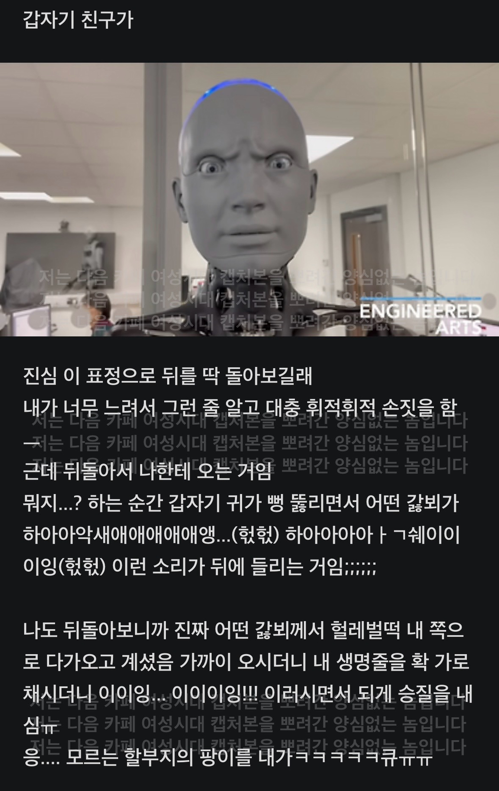 [여시캡쳐]여시: 가세요 지팡이도 부러뜨리기 전에 (1나장) 작성자9ARAGE|작성시간25.04.24|조회수77,073 목록 댓글 273 글자크기 작게가 글자크기 크게가 출처 : 여성시대 9ARAGE대형 게시판에 글 쓰는 게 처음이라죠…혹시 고칠 점 있으면 이야기해 주시길누구보다 개갓이. 빠르게. 고쳐오겟읍니다.\_______________ ㅤ ㅤ _______________/V평화로운 자게에 지나칠 수 없는 제목의 등장 너무 웃겨서 나만 볼 수 없었음...허락댓 인증!! 다음검색 현재 게시글 추가 기능 열기 북마크 공유하기 신고 센터로 신고 댓글 댓글 273 댓글쓰기 답글쓰기 댓글 리스트 작성자가슴을 찢어놓고 휴지로 되겠어요? | 작성시간 25.05.05 아진짜 개웃겨 제발 ㅠㅠ하 ㅠㅠ ㅋㅋㅋㅋ 작성자성심당서울에도 생겨라 | 작성시간 25.05.05 앜ㅋㅋㅋㅋㅋㅋㅋㅋㅋㅋㅋ 작성자동하니 | 작성시간 25.05.14 개울ㅋㅋ 작성자iceblueheart | 작성시간 25.05.15 미친ㅋㅋㅋㅋㅋ 작성자칷햄 | 작성시간 25.05.20 하악새앵~! 댓글 전체보기