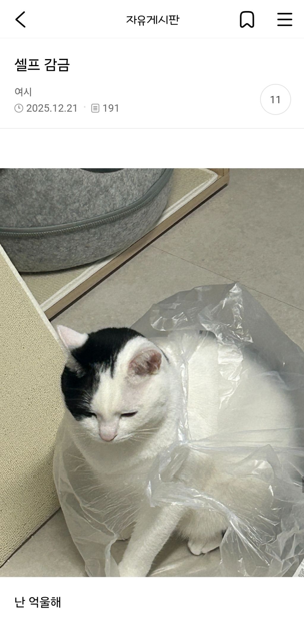 3번 셀프감금 고양이와 동일냥물 맞음,,