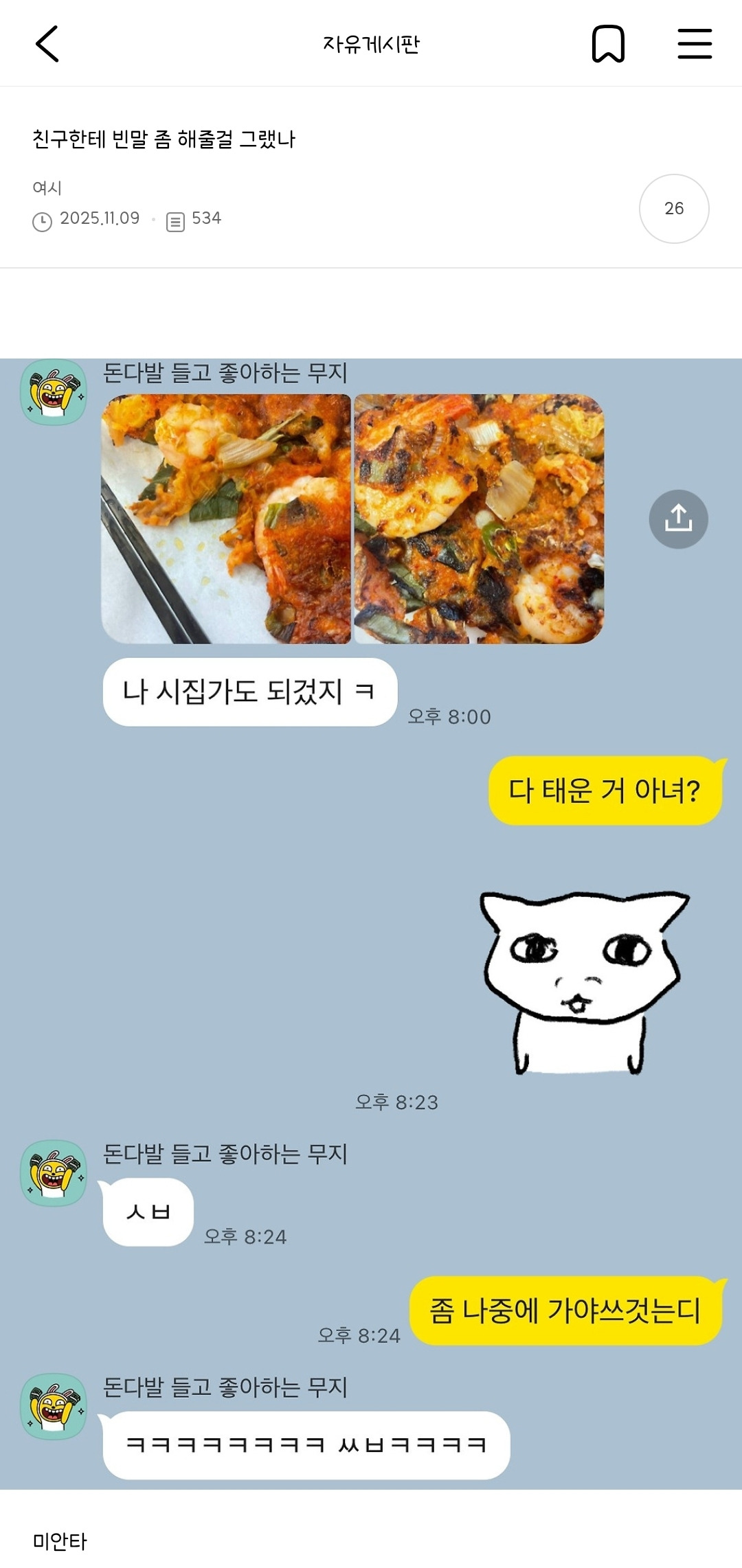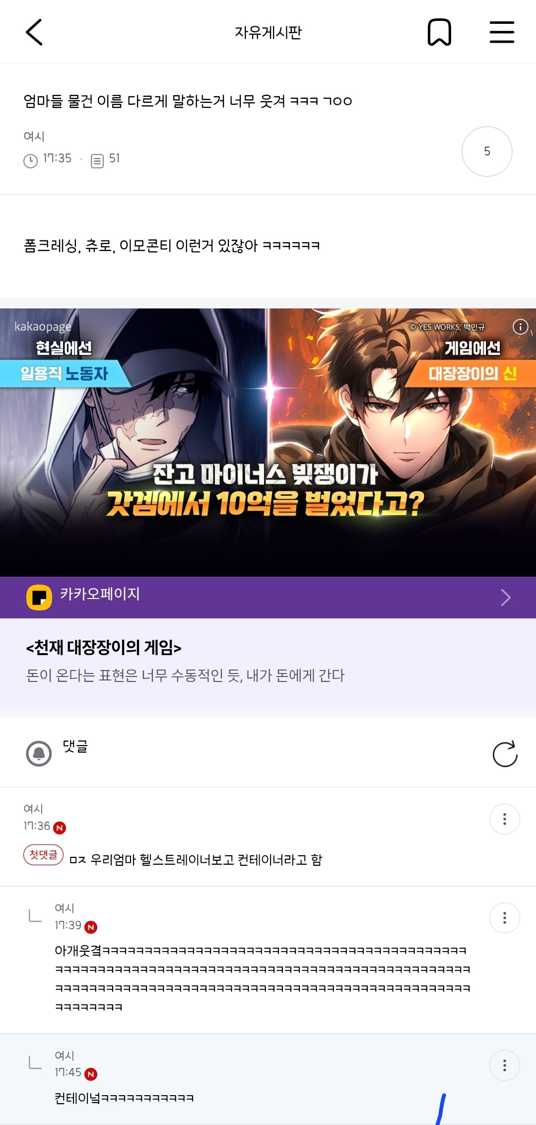 [여시캡쳐]캡처 19 작성자유토맘|작성시간26.01.24|조회수71,180 목록 댓글 459 글자크기 작게가 글자크기 크게가 출처: 여성시대 유토맘 1 2 3 4 5 6 7 8 9 10 11 12 13 14 (구)캡처 (구)캡처2 15 16 17 18 ? 다음검색 현재 게시글 추가 기능 열기 북마크 공유하기 신고 센터로 신고 댓글 댓글 459 댓글쓰기 답글쓰기 댓글 리스트 작성자훈제맛깐깐징어 | 작성시간 26.03.07 앜ㅋ 몰폰하다마 마지막 라면에서 소리냄ㅜㅠ 아 배아파 소리 못내고웃으니 입도아프다 아 잼나 작성자안개왈츠 | 작성시간 26.03.09 악귀들린 필사 웃겨서주글것같아 ㅁㅊ ㅠㅜㅜㅜㅜㅜㅜㅜ 작성자소고기먹었지롱 | 작성시간 26.03.11 아 다 너무재밋다 진짜 작성자홍준표 | 작성시간 26.03.18 포토샵 존나웃기다 아 작성자느낌굿 | 작성시간 26.03.30 ㄴㅋㅋㅋㅋㅋㅋㅋㅋ글 고마워 너무 웃기다 댓글 전체보기