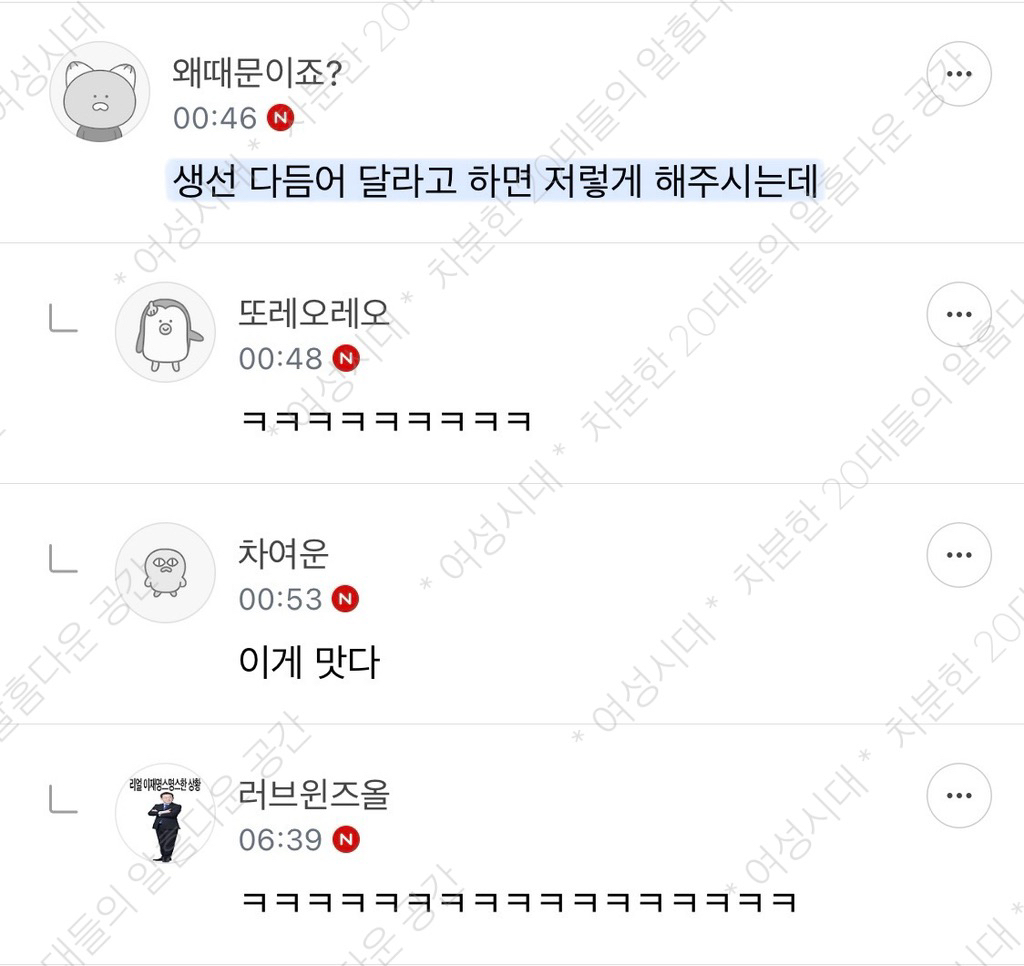 [여시캡쳐]2월의 여시캡쳐🙇🏻♀️👛 작성자Remember me,|작성시간26.02.22|조회수51,804 목록 댓글 254 글자크기 작게가 글자크기 크게가 출처 : 여성시대 Remember me, + 공지 쌩유😉- 뭐야 사진 왜이리 작아 다음검색 현재 게시글 추가 기능 열기 북마크 공유하기 신고 센터로 신고 댓글 댓글 254 댓글쓰기 답글쓰기 댓글 리스트 작성자후.아.유. | 작성시간 26.03.09 ㄱㅇㄱ 작성자햄북이북이뱅뱅 | 작성시간 26.03.10 아 왕비호 ㅈㄴ눅겨ㅠㅠㅋㅋㅋㅋㅋㅋ 작성자귀인상봉나에게로 | 작성시간 26.03.10 아 진짜 개웃기다 아ㅠㅠㅠㅠ 작성자재용이네주식개잡주 | 작성시간 26.03.10 새형냨ㅋㅋㅋㄴ 작성자퍼컬전문가 | 작성시간 26.03.19 ㅋㅌㅋㅌㅋㅋㅋㅋㅌㅌㅋㅋㅅㅂ 댓글 전체보기
