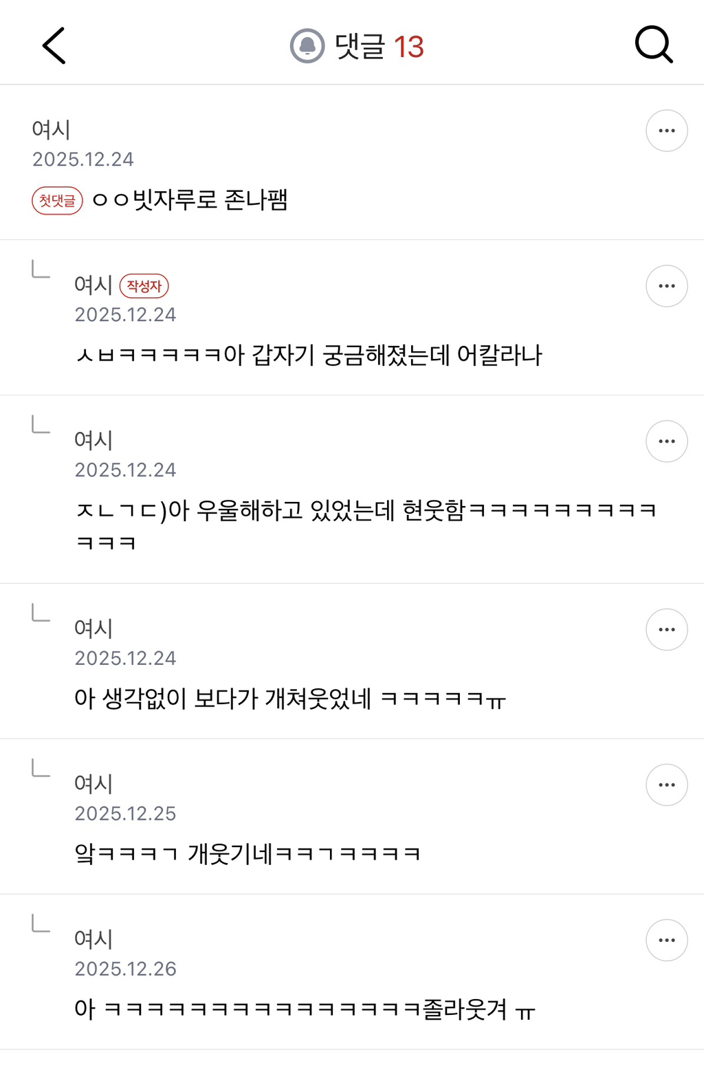 [여시캡쳐]이 여캡을 어떻게 지나쳐 작성자꾸운치즈|작성시간26.02.23|조회수57,077 목록 댓글 448 글자크기 작게가 글자크기 크게가 출처 : 여성시대 꾸운치즈*일부 허락 못받은 캡쳐 있습니다.비댓 주시면 호다닥 내리겠습니다.1.2.팬티의 복수3.4.5.🐶: 시핥..6.7.매빨장이?가 뭐지 (아방방)8.9.존나 딴소리 하는 여시 vs 존나 무던한 여시10.11.12.가튼여시들한테 그렇게 말하먄 어떡해13.아니 그래서 마운자로 맛있냐고 여샤14.15.십새끼 서식지 2,316.👥👥: 와 핑크....17.어떻게 사람이름이 궁민이18.어떻게 아이브 이름이 경차19.20.21.22.23.알고보니 효녀였던 귀여운 여시로 마무리 다음검색 현재 게시글 추가 기능 열기 북마크 공유하기 신고 센터로 신고 댓글 댓글 448 댓글쓰기 답글쓰기 댓글 리스트 작성자삼순이정식 | 작성시간 26.03.17 나 오땅이라 십새기 서식지랑 낸시랭 보고 두지ㅣㄹ뻔 ㅠ ㅋㅋㅋㅋㅋㅋㅋㅋㅋㅋㅋㅋㅋㅋㅋㅋㅋㅋㅋㅋㅋㅋㅋㅋㅋ 작성자소화불량자 | 작성시간 26.03.17 ㅋㅋㅋㅋㅋㅋㅋㅋㅋㅋㅋ 작성자강해린 고양이토끼 | 작성시간 26.03.18 십새끼서식짘ㅋㅋㅋㅋ 작성자모두의숲 | 작성시간 26.04.03 어갸웃겨 다웃ㄱㅋㅋㅋㅋㅋ 작성자쿼카쿠키 | 작성시간 26.04.16 ㅋㅋㅋㅋㅋㅋㅋㅋㅋㅋㅋ아 너무웃겨 댓글 전체보기