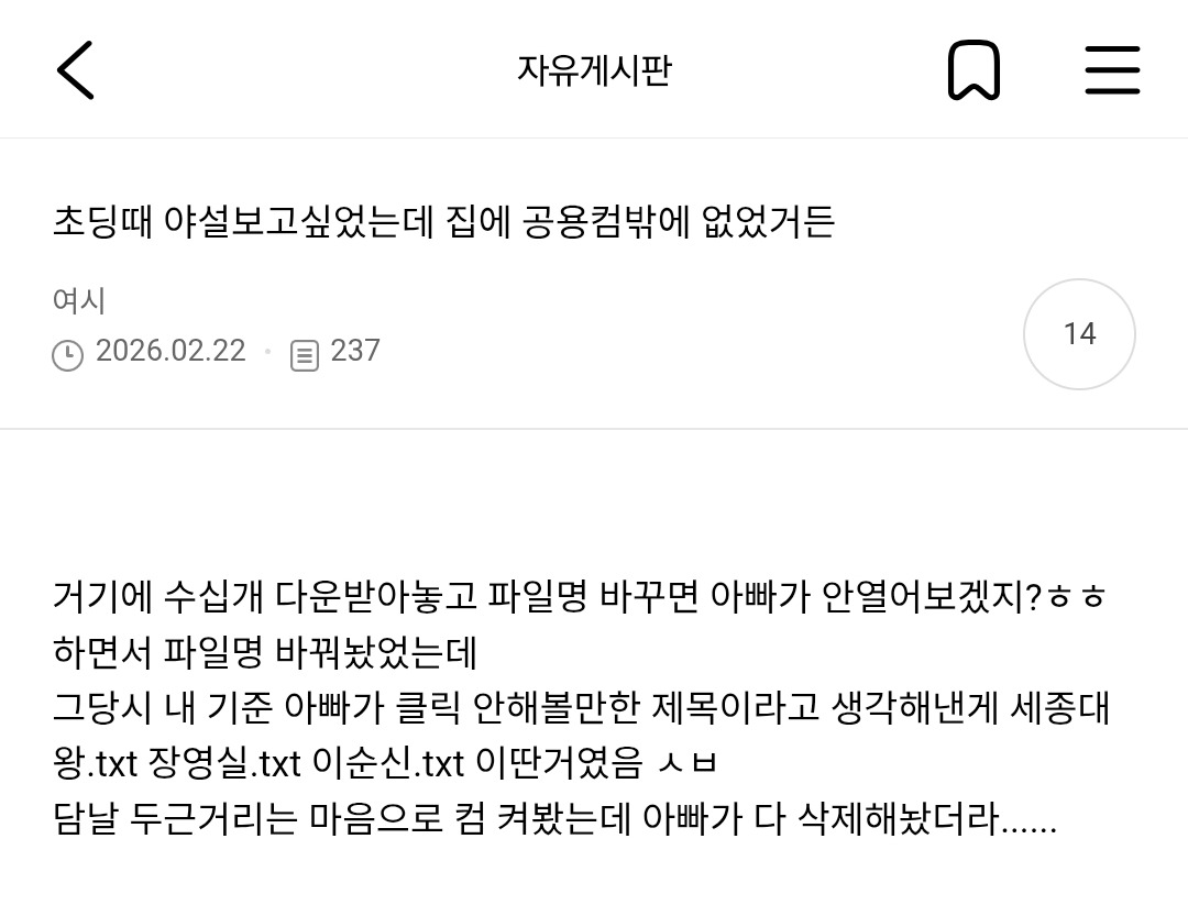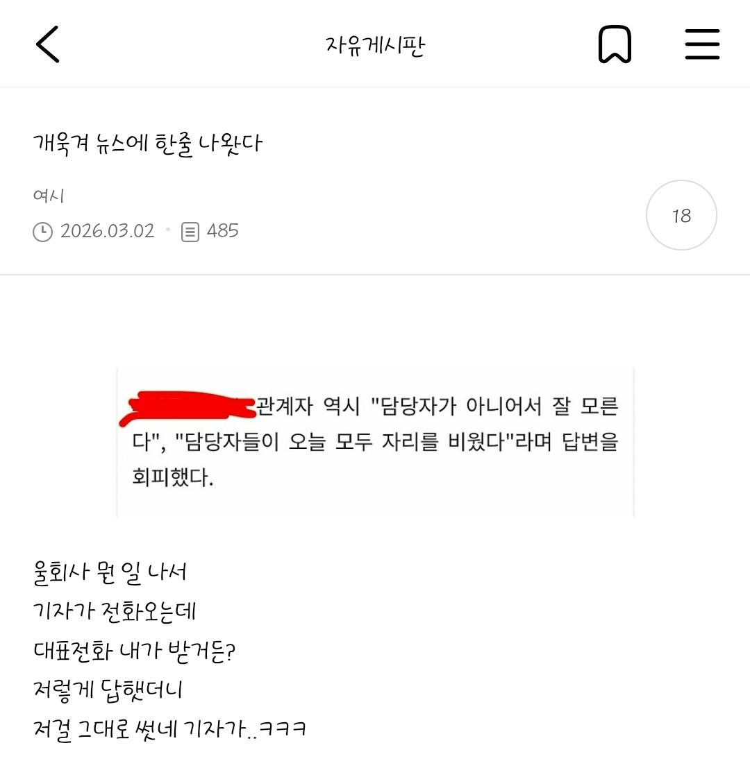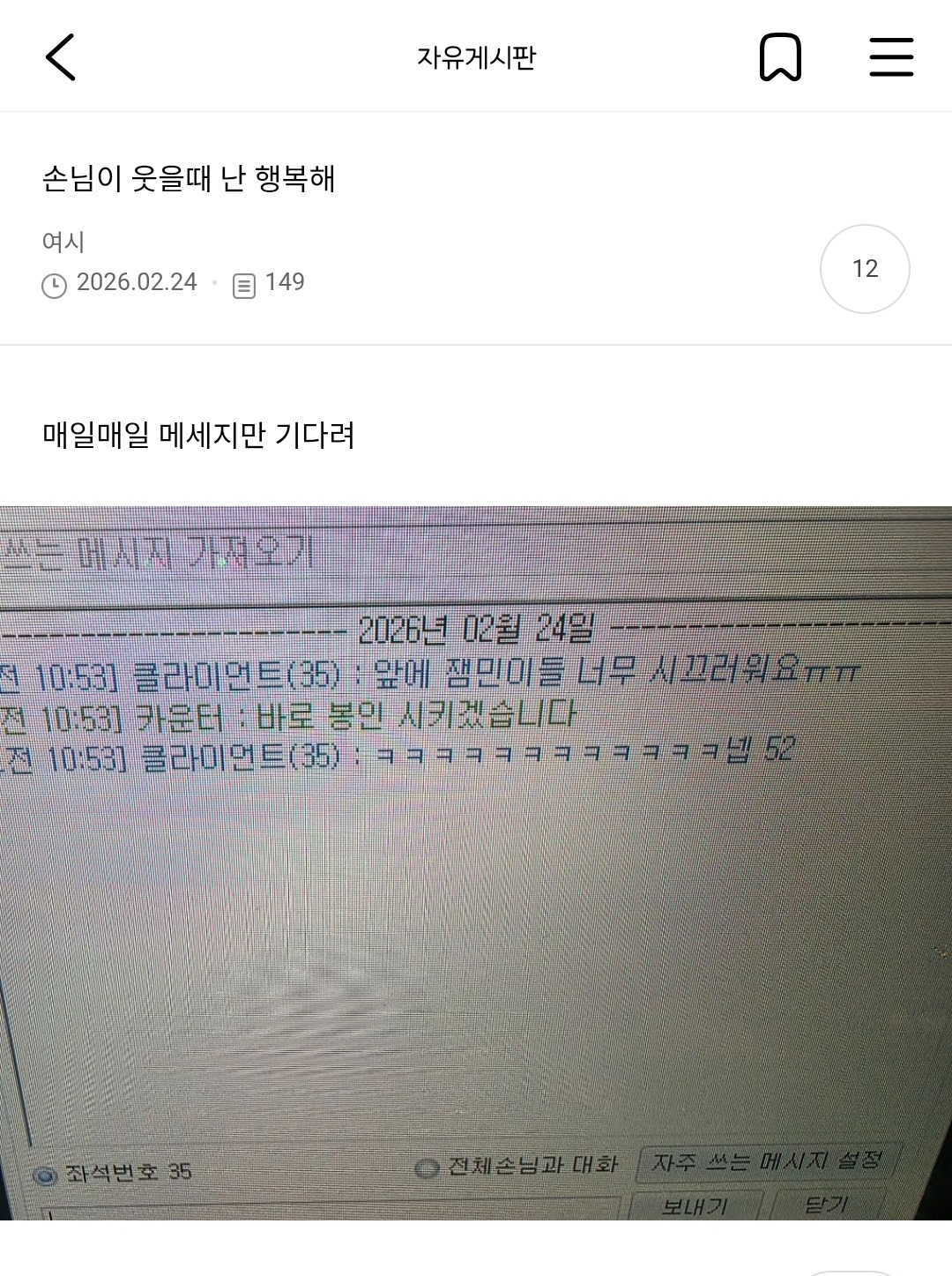 [여시캡쳐]캡처 20 작성자유토맘|작성시간26.03.10|조회수64,253 목록 댓글 517 글자크기 작게가 글자크기 크게가 출처: 여성시대 유토맘 1 2 3 4 5 6 7 8 9 10 11 12 13 14 (구)캡처 (구)캡처2 15 16 17 18 19 캡처 꿀. 다음검색 현재 게시글 추가 기능 열기 북마크 공유하기 신고 센터로 신고 댓글 댓글 517 댓글쓰기 답글쓰기 댓글 리스트 작성자구구콘맛있다 | 작성시간 26.03.29 돌아온 유토맘 ㅜㅜ 늘 개웃김 작성자Portrait of a lady | 작성시간 26.03.29 아 존나웋기다 진짜 작성자호호랑랑 | 작성시간 26.04.01 크룽지 노비ㅋㅋㅋㅋㅋ 작성자닥스 | 작성시간 26.04.04 아진짜너무웃긴거많라미치교ㅔ다 작성자lakeeu | 작성시간 26.04.04 거상 받다가 죽었냐는 거 개웃기넼ㅋㅋㅋㅋㅋㅋㅋ 댓글 전체보기