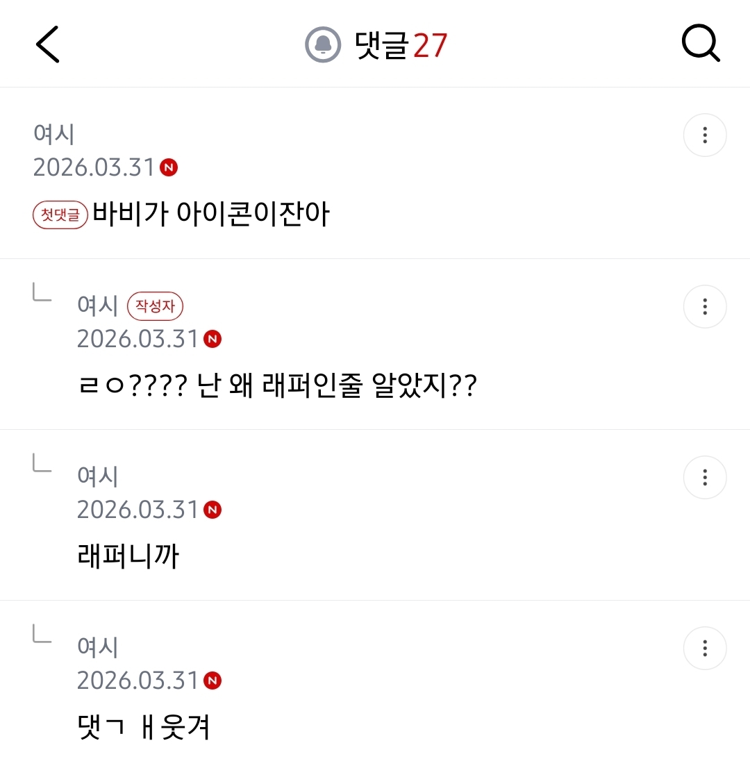 작성자아하넵캐스퍼 작성시간 26.04.04 ㅋㅋㅋㅋㅋㅋㅋ