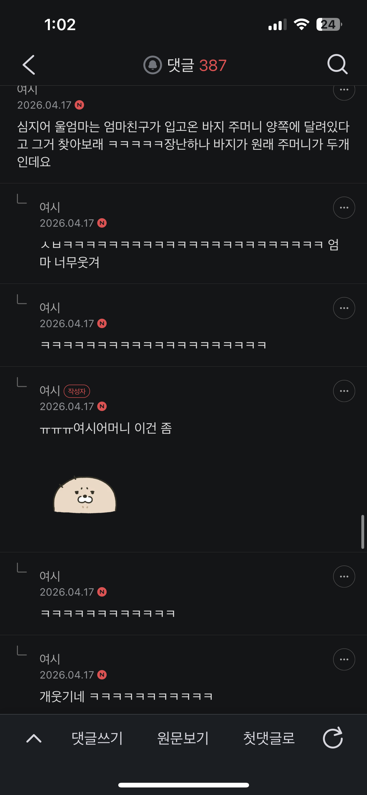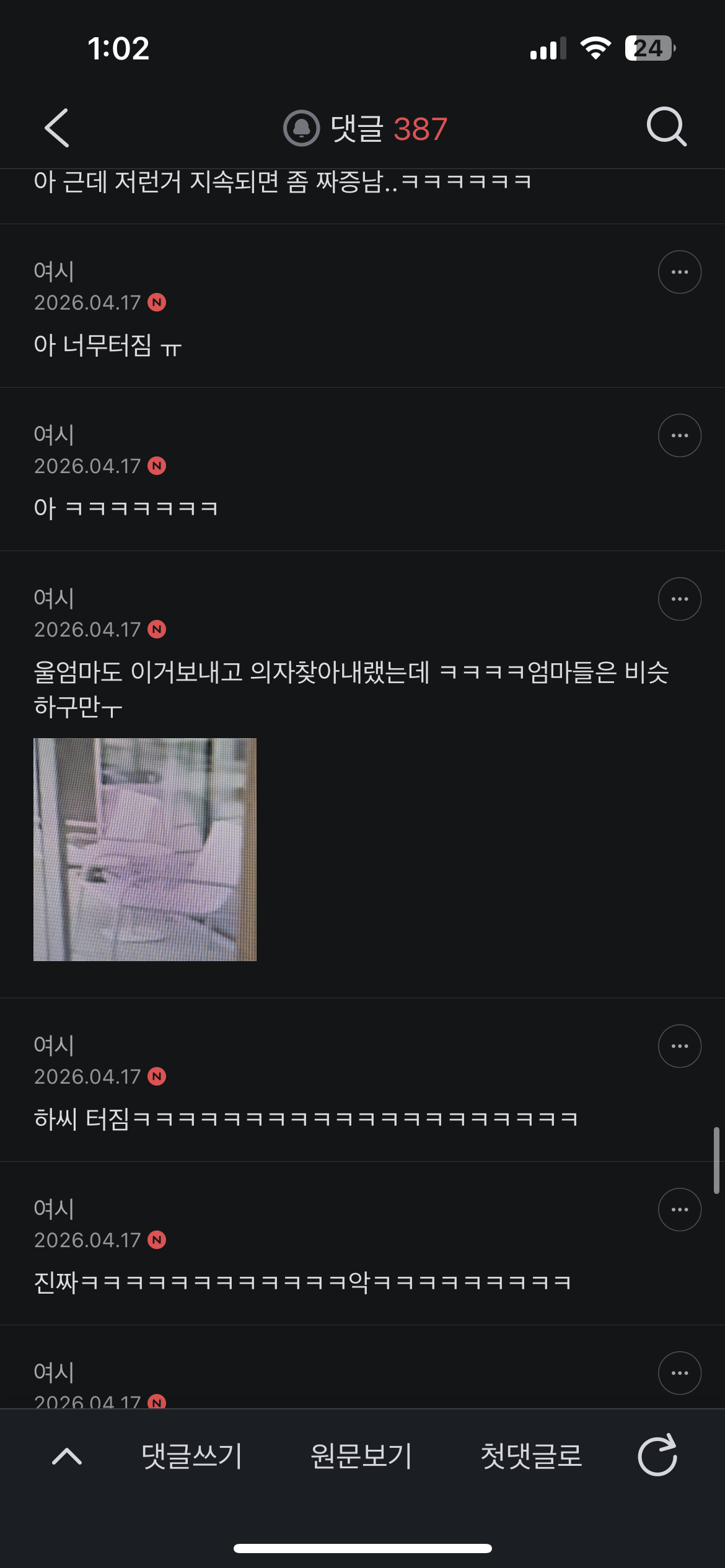 [여시캡쳐]여시: 개웃굥 ㅠㅠ 작성자난주식해서집산다|작성시간26.04.18|조회수78,167 목록 댓글 349 글자크기 작게가 글자크기 크게가 출처 : 여성시대 난주식해서집산다허락 못 받았스요내리고싶은 여시 바로 말해줘❕❕❕스타뜨 🍀🍀개똑같음 ㅁㅊ🍀당황한 글쓴 여시 ㅠㅋㅋㅋㅋㅋㅋㅋㅋㅋ🍀🍀🍀연예인 실물 관련 게시글이였음!🍀🍀🍀🍀🍀🍀🍀 끄읕 ㅋ 다음검색 현재 게시글 추가 기능 열기 북마크 공유하기 신고 센터로 신고 댓글 댓글 349 댓글쓰기 답글쓰기 댓글 리스트 작성자팟럭파티 | 작성시간 26.04.26 살리단길ㅋㅋㅋㅋㅋㅋㅋㅋㅋㅋ 작성자꼬꼬리 | 작성시간 26.04.27 잡짘ㅋㅋㅋㅋㅋㅋ 작성자코가아찔 | 작성시간 26.04.27 살리단길ㅋㅋㅋㅋㅋㅋㅋㅋㅋㅋㅋㅋㅋㅋㅋㅋㅋㅋㅋㅋㅋㅋㅋㅋㅋㅋㅋㅋㅋㅋㅋㅋ국밥프린스1호점ㅋㅋㅋㅋㅋㅋㅋㅋㅋㅋㅋㅋㅋㅋㅋㅋ 작성자쉬를갈기지마세요 | 작성시간 26.04.28 아 미치뎃넼ㅋㅋㅋㅋㅋㅋㅋㅋㅋㅋㅋㅋㅋㅋㅋㅋㅋㅋㅋㅋㅋㅋㅔ 작성자레몬가방 | 작성시간 26.04.29 new 개웃굥 ㅠㅠ 댓글 전체보기