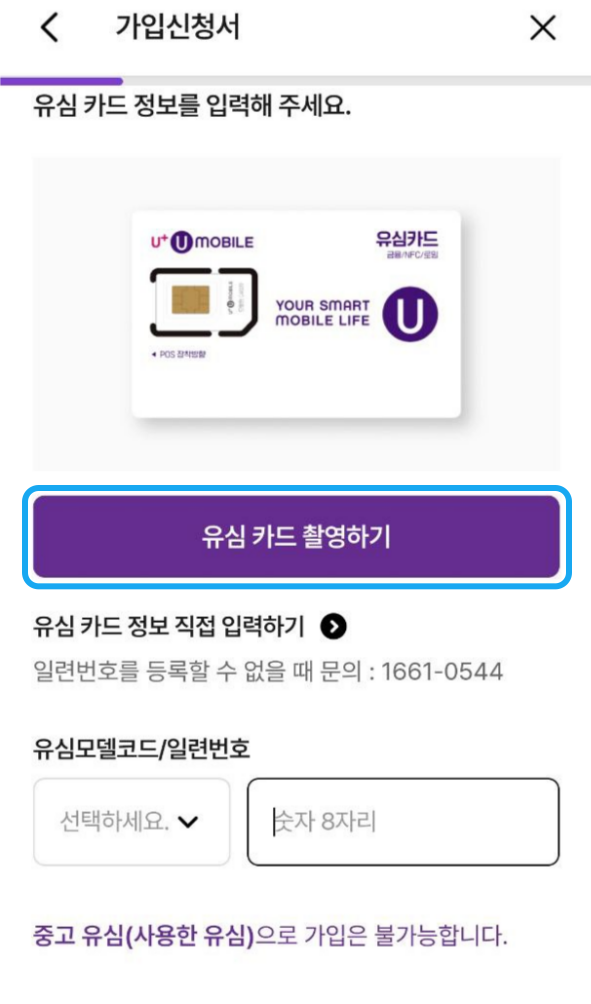 신청한 유심을 배송 받은 후, 가입을 해야