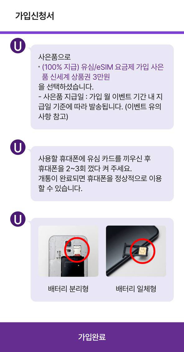 5) 가입 완료 후 유심 삽입하면 개통 성공!