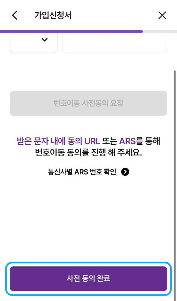 번호이동 사전동의 요청 및 사전 동의