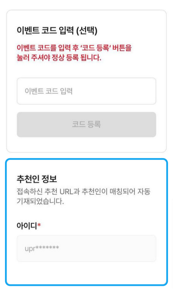 추천인 정보가 upr******* 혹은 특별이**로 기재되어있는지 확인해주세요.