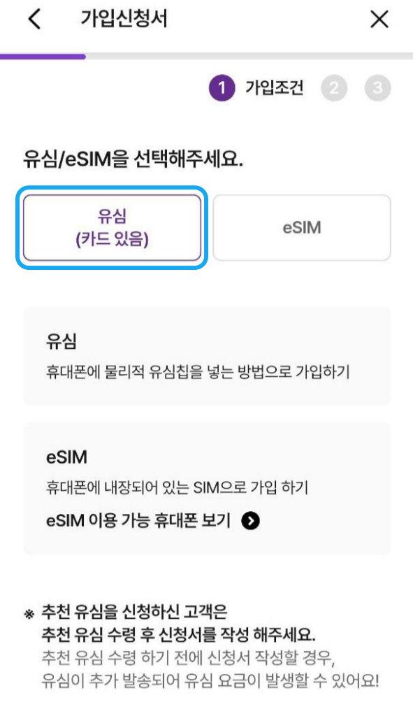 2) 유심/eSIM 선택