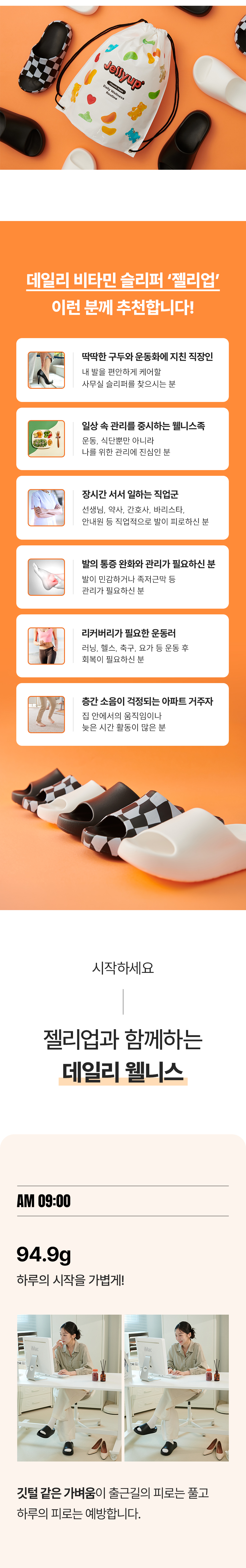 데일리 웰니스 /루틴템 / 사무실슬리퍼 / 실내슬리퍼 / 슬리퍼 추천 / 젤리업 / jellyup / 비타민 슬리퍼 / 말랑쫀득
