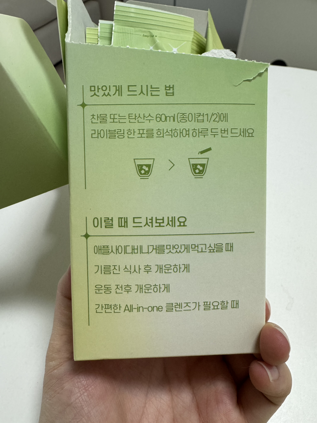 확실히 식사하고 라이블링 옐로우클렌즈 먹어주면 식욕이 잠재워지는게 느껴져! 원래 밥 먹고 뭔가 더 먹고싶은 게 혈당때문인 거 알지?! 라이블링 한 잔 타 마시고 물로 입 헹구고 양치까지 하면 갓.벽.해. 💛