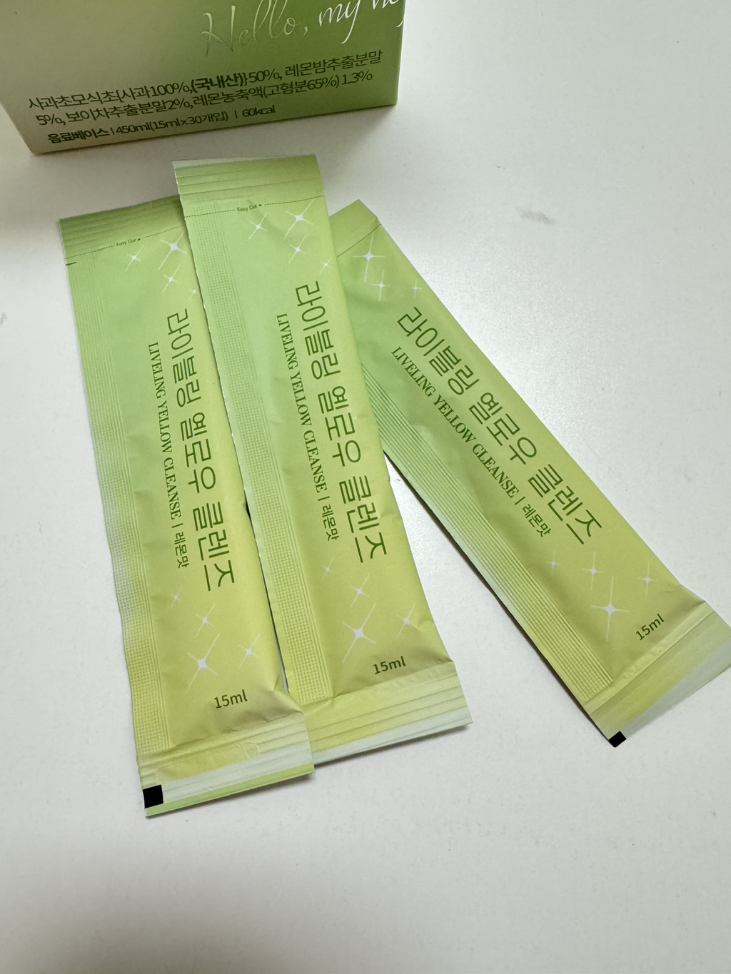 라이블링 옐로우 클렌즈 한 포에 15ml이고 다른맛도 용량은 다 같아! 매실맛 넘 궁금하당