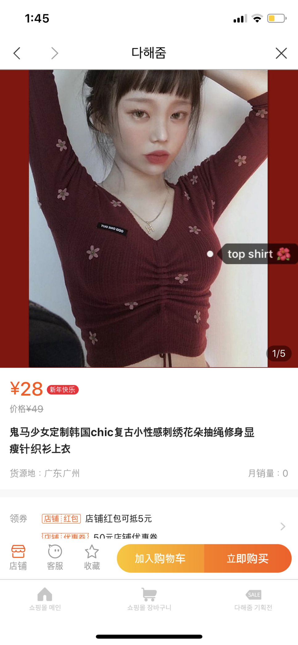 (크롭티 개좋아함)색은 썸넬처럼 자주색으로 샀다.